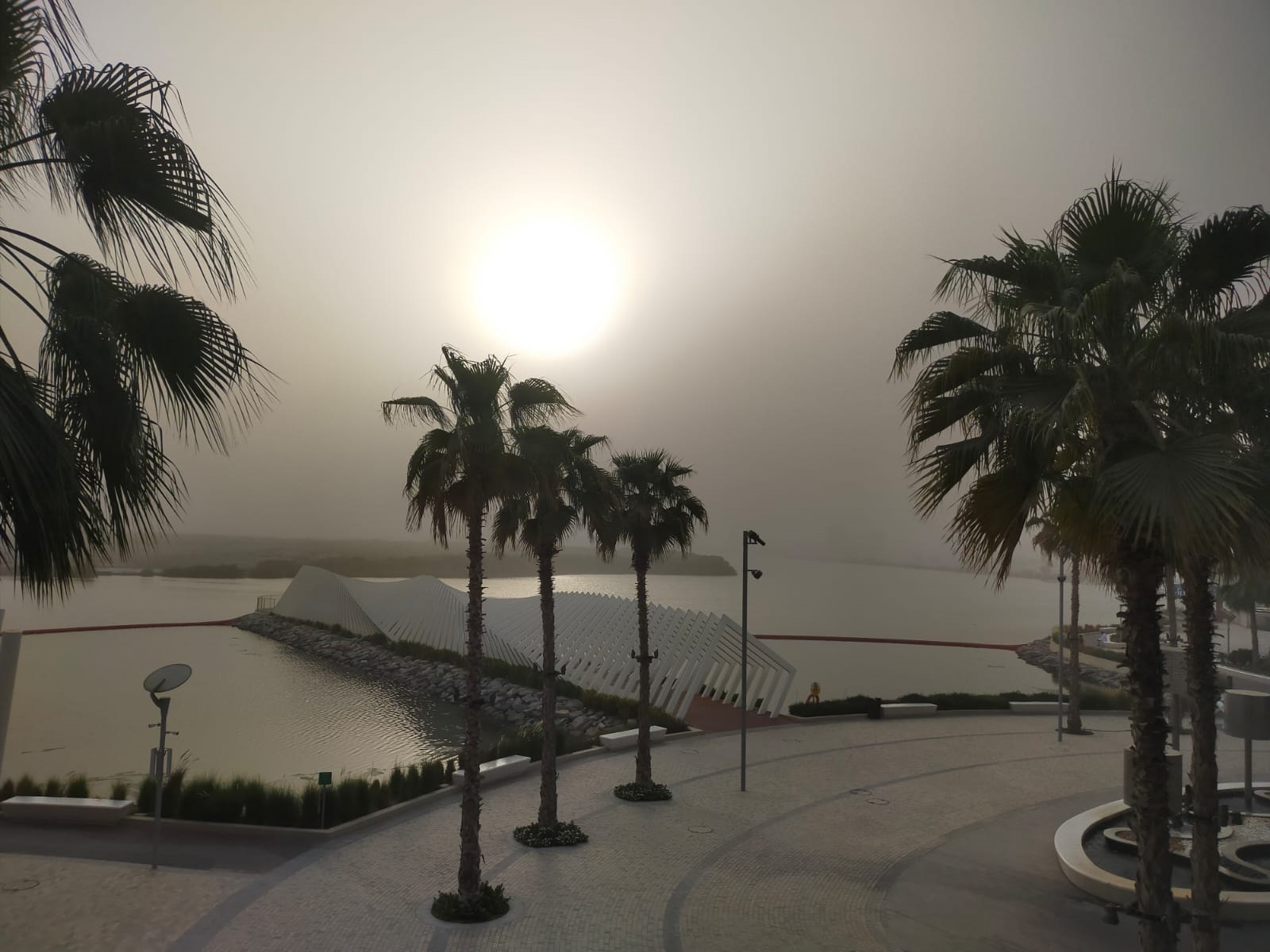 كما تشهد مناطق رأس الخيمة مرور عاصفة ترابية مصحوبة برياح وارتفاع في درجات الحرارة، ما أدى إلى تدني الرؤية.