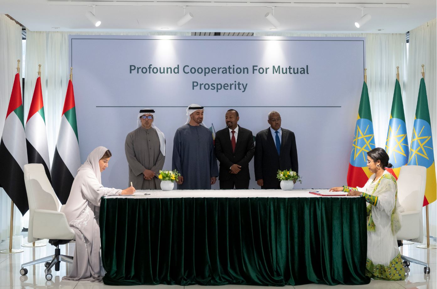 - مذكرة تفاهم للتعاون في مجال الصناعة والتكنولوجيا المتقدمة وقعها معالي الدكتور سلطان بن أحمد الجابر وزير الصناعة والتكنولوجيا المتقدمة وملاكو ألبيل وزير الصناعة الإثيوبي.