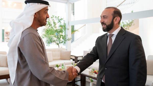 ونقل معالي وزير الخارجية إلى سموه - خلال اللقاء الذي جرى في قصر الشاطئ - تحيات فخامة فاهاجن خاتشاتوريان رئيس أرمينيا وتمنياته لدولة الإمارات دوام التقدم والازدهار .. فيما حمله سموه تحياته إلى رئيس أرمينيا وخالص تمنياته لبلده وشعبه الصديق بمزيدٍ من التطور والنماء .