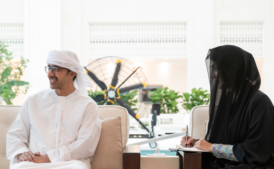 حضر اللقاء .. سمو الشيخ عبدالله بن زايد آل نهيان وزير الخارجية ومعالي ريم بنت إبراهيم الهاشمي وزيرة دولة لشؤون التعاون الدولي.