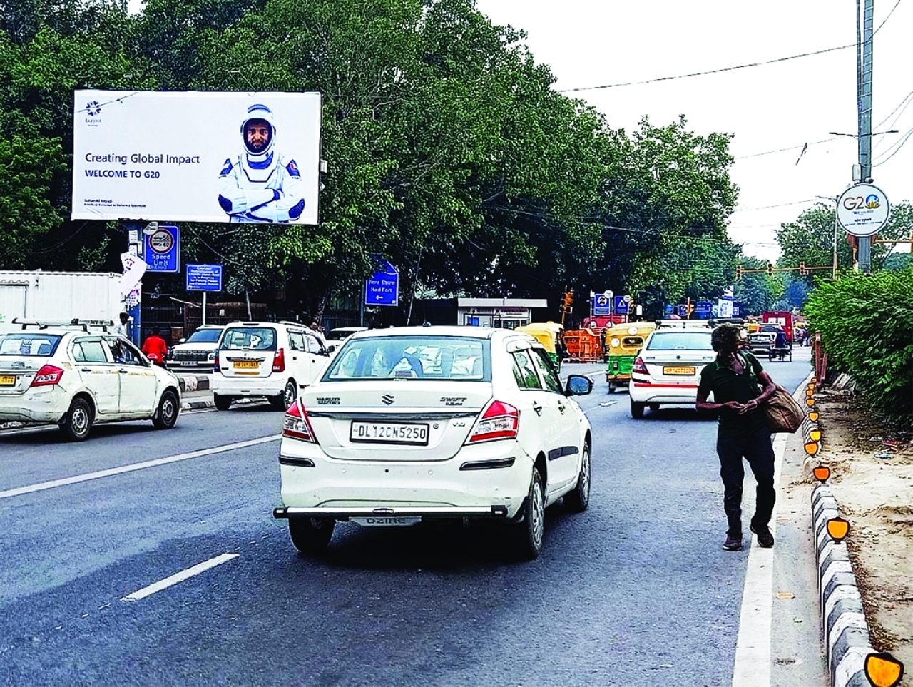 ظهرت لوحات إعلانية لرائد الفضاء الإماراتي سلطان النيادي في جميع أنحاء نيودلهي، بينما تستعد لاستضافة قمة الـ18 لمجموعة العشرين، حيث تعد هذه اللوحات الكبيرة بمثابة تذكير بالتعاون الدولي الذي يواصل دفع عجلة التقدم في المساعي العلمية.