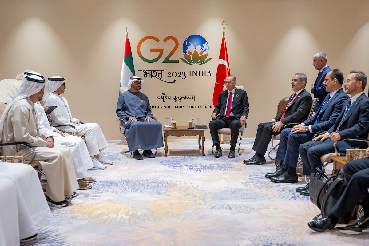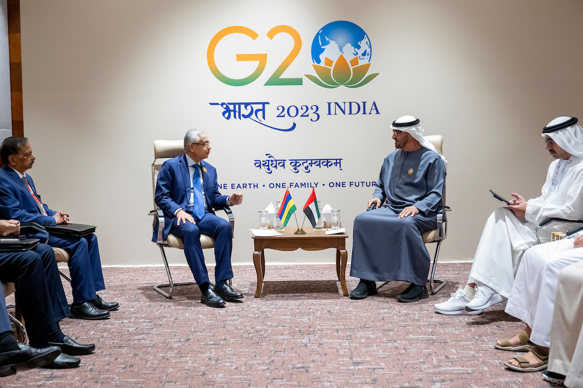 التقى صاحب السمو الشيخ محمد بن زايد آل نهيان رئيس الدولة "حفظه الله" اليوم في نيودلهي عدداً من قادة الدول ورؤساء الحكومات المشاركين في أعمال القمة الــ 18 لمجموعة العشرين التي تستضيفها جمهورية الهند الصديقة تحت شعار "أرض واحدة، أسرة واحدة، مستقبل واحد ".