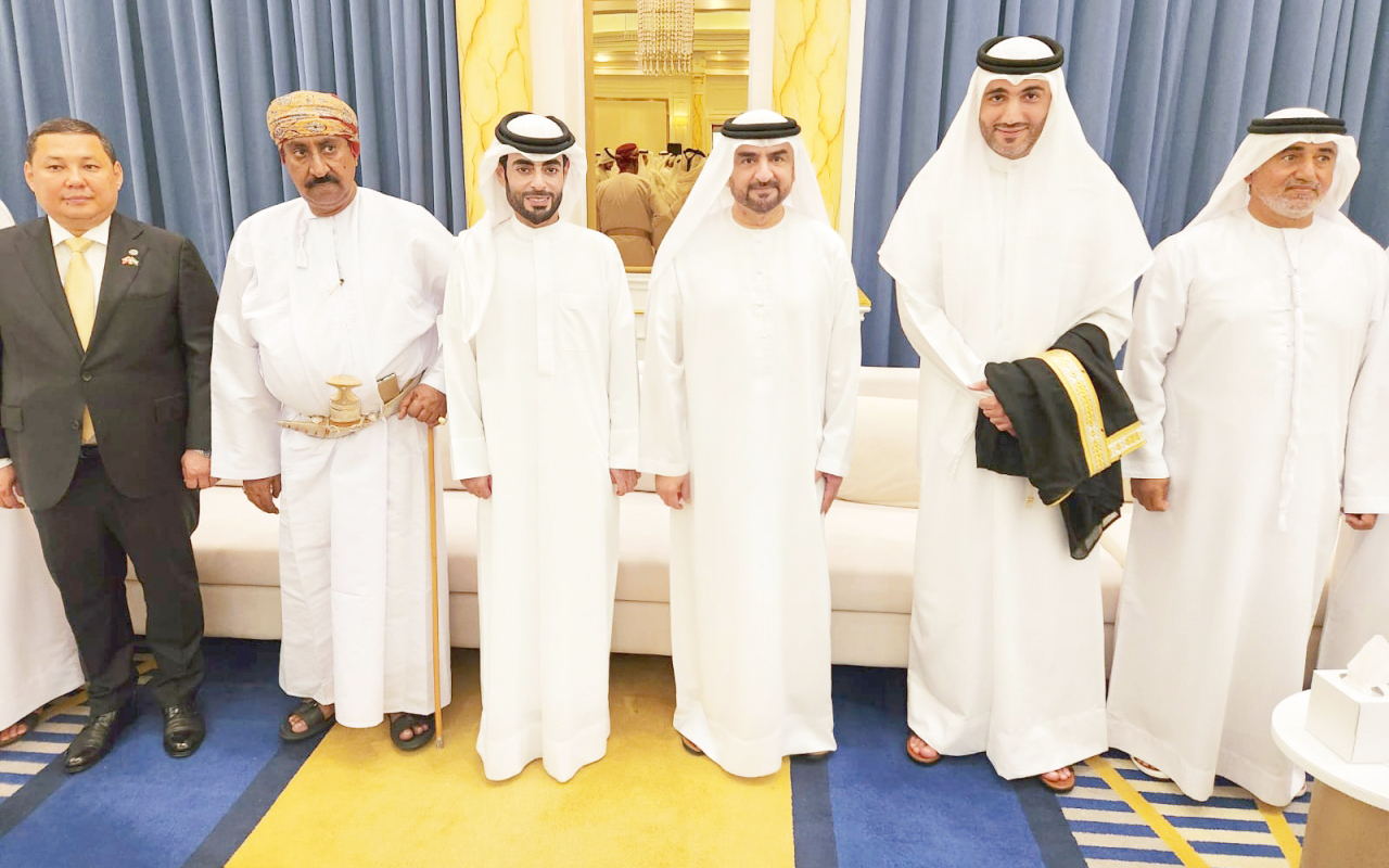 حضر حفل الاستقبال بجانب سمو نائب حاكم الشارقة الشيخ خالد بن عبدالله القاسمي رئيس هيئة الشارقة للموانئ والجمارك والمناطق الحرة، والشيخ سالم بن عبدالرحمن القاسمي رئيس مكتب سمو الحاكم، والشيخ صقر بن محمد القاسمي رئيس مجلس ادارة جمعية الشارقة الخيرية، والشيخ سعيد بن صقر القاسمي نائب رئيس مكتب سمو الحاكم بمدينة خورفكان، والشيخ هيثم بن صقر القاسمي نائب رئيس مكتب سمو الحاكم بمدينة كلباء وعدد من الشيوخ وكبار المسؤولين.