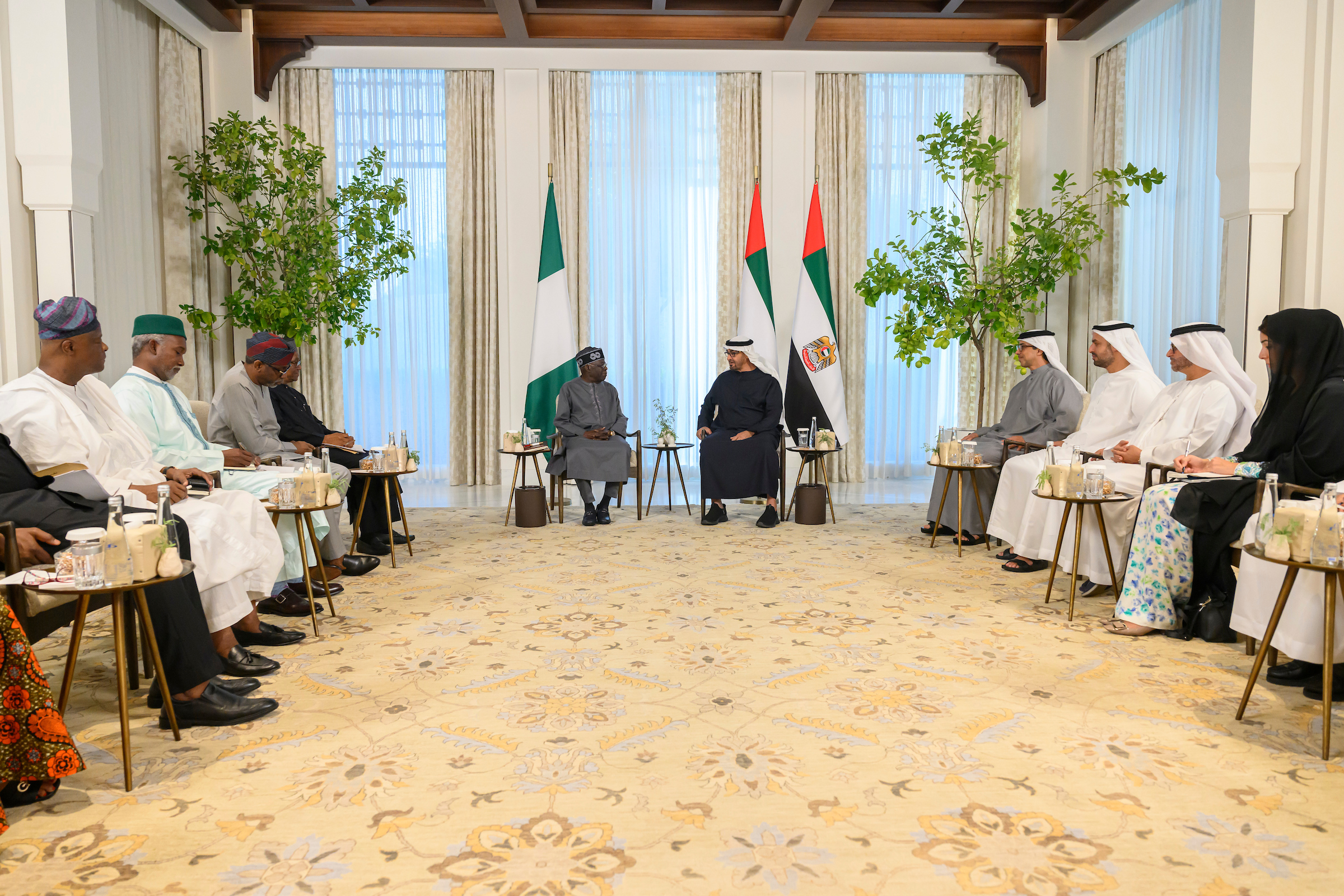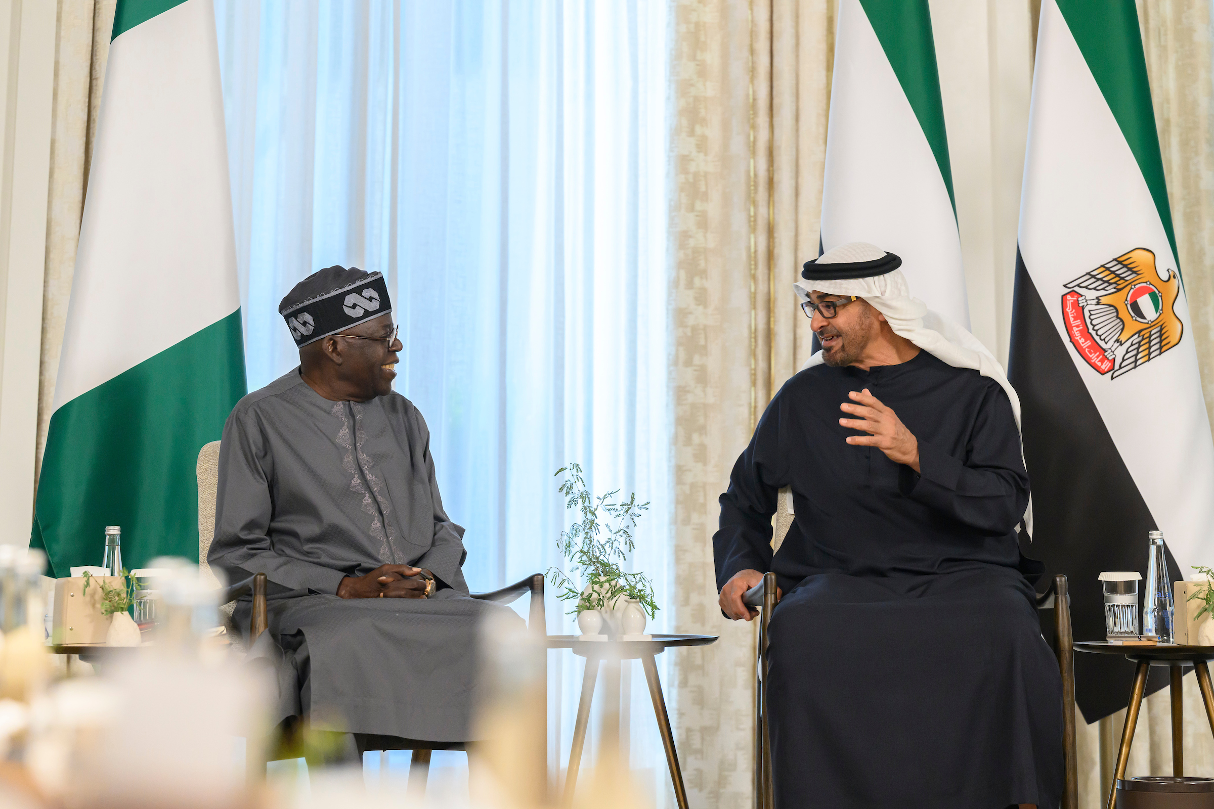 ورحب سموه بالرئيس النيجيري في دولة الإمارات وجدد تهنئته بتوليه منصب الرئاسة متمنياً له التوفيق في مهامه الوطنية..وأعرب سموه عن تطلعه إلى العمل معاً لدفع علاقات البلدين إلى آفاق أرحب من التعاون لتحقيق مصالحهما المتبادلة.