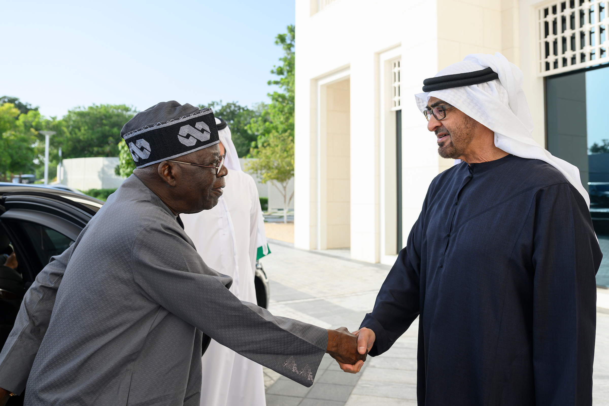 استقبل صاحب السمو الشيخ محمد بن زايد آل نهيان رئيس الدولة "حفظه الله" اليوم - في قصر الشاطئ في أبوظبي- فخامة بولا أحمد تينوبو رئيس جمهورية نيجيريا الاتحادية الذي يقوم بزيارة عمل إلى الدولة.