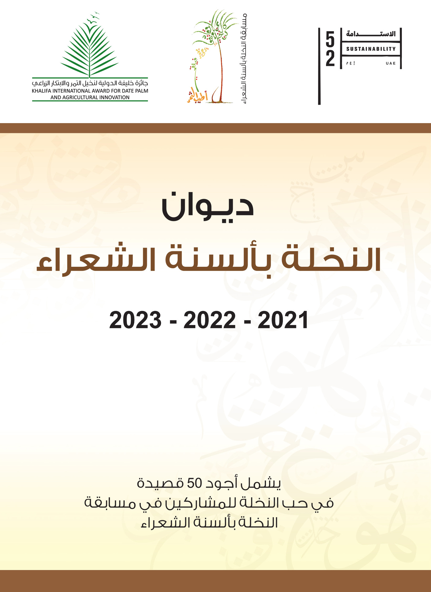 أصدرت الأمانة العامة لجائزة خليفة الدولية لنخيل التمر والابتكار الزراعي كتابين جديدين، الأول بعنوان: «أجمل 50 قصيدة في حب النخلة»، والثاني «أجمل 90 صورة فوتوغرافية للشجرة المباركة».