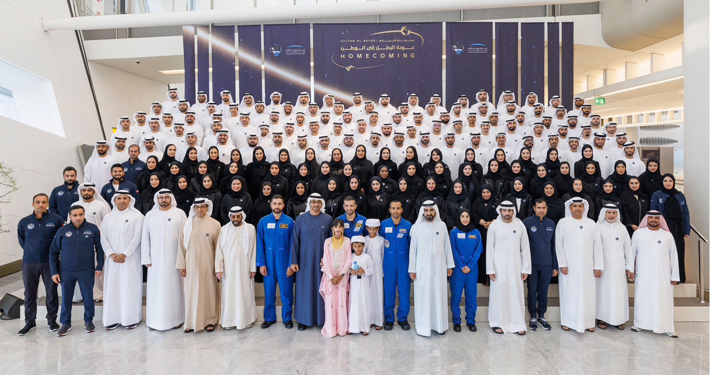 كما التقى صاحب السمو الشيخ محمد بن زايد آل نهيان وصاحب السمو الشيخ محمد بن راشد آل مكتوم فريق عمل مركز محمد بن راشد للفضاء، وهنأ سموهما جميع فرق عمل المركز التي أسهمت في نجاح مهمة رائد الفضاء سلطان النيادي والتي قضى خلالها ستة أشهر في محطة الفضاء الدولية، مثمنين جهودهم ودورهم في إنجاح هذه المهمة التاريخية لدولة الإمارات والعرب والمهمات السابقة مثل مهمة هزاع المنصوري ومهمة إرسال "مسبار الأمل" للمريخ، معربين عن ثقتهما في أن الكوادر الوطنية على قدر المسؤولية.