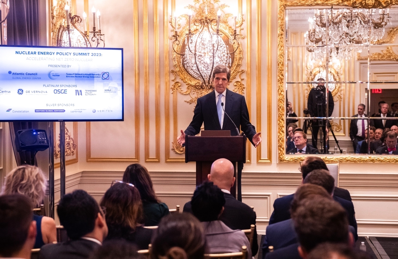 وأكد جون كيري المبعوث الرئاسي الأمريكي لشؤون المناخ خلال كلمته الافتتاحية، التزام حكومة الولايات المتحدة الأمريكية بالطاقة النووية، وأشاد بمبادرة «الطاقة النووية من أجل الحياد المناخي»، وقال: «الولايات المتحدة ملتزمة الآن، استناداً إلى التجربة والواقع، بعملية تعزيز وتطوير الطاقة النووية، في إطار برنامج الرئيس الأمريكي جو بايدن، وهو ما نحتاجه بشدة للنجاح في مواجهة التغير المناخي ونعتقد أنه لا يزال بإمكاننا النجاح بذلك».
