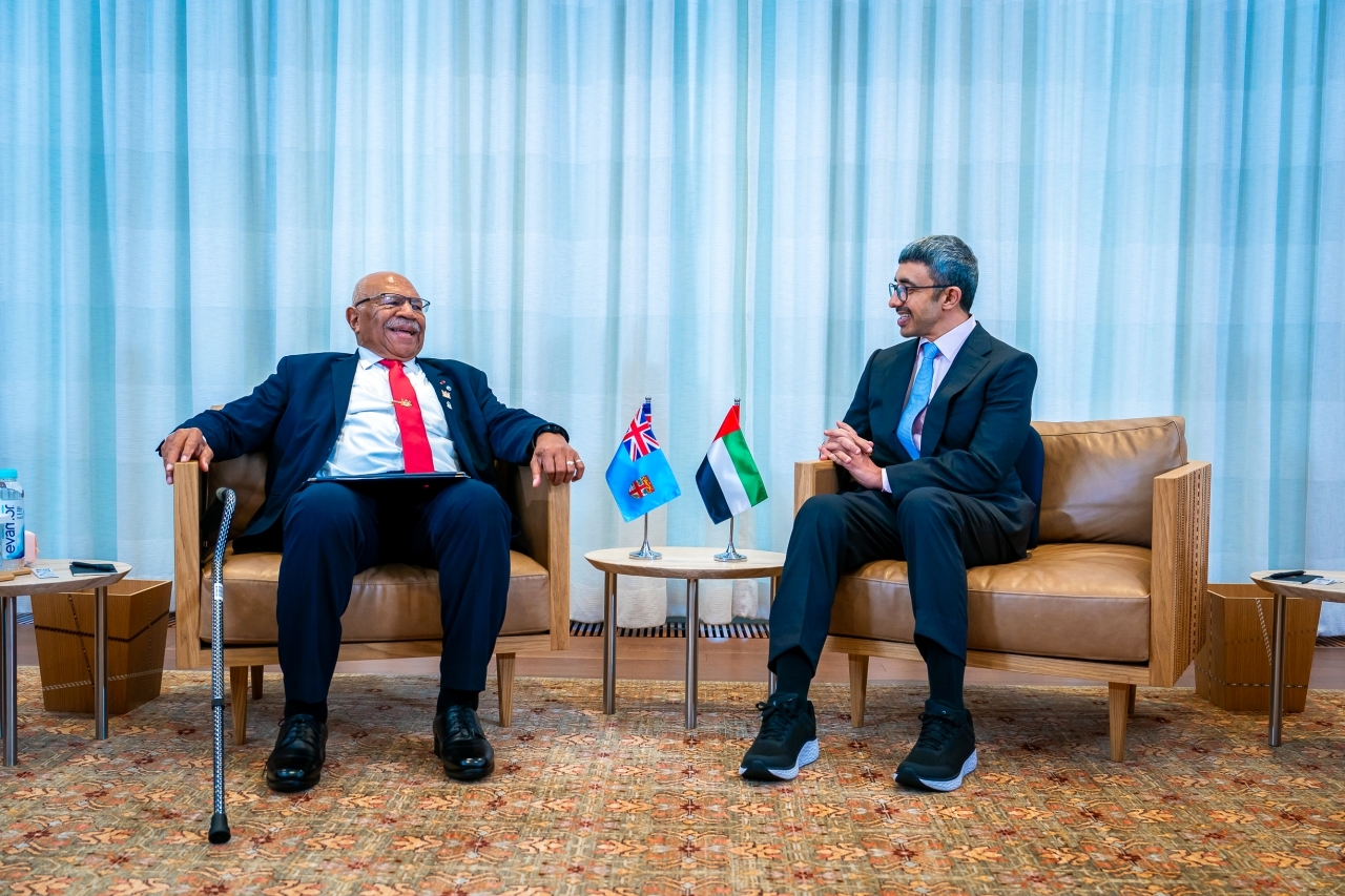 وبحث سموه، وسيتيفيني رابوكا، رئيس وزراء فيجي، العلاقات الثنائية والتعاون المشترك بين البلدين لاسيما في مجال المناخ.