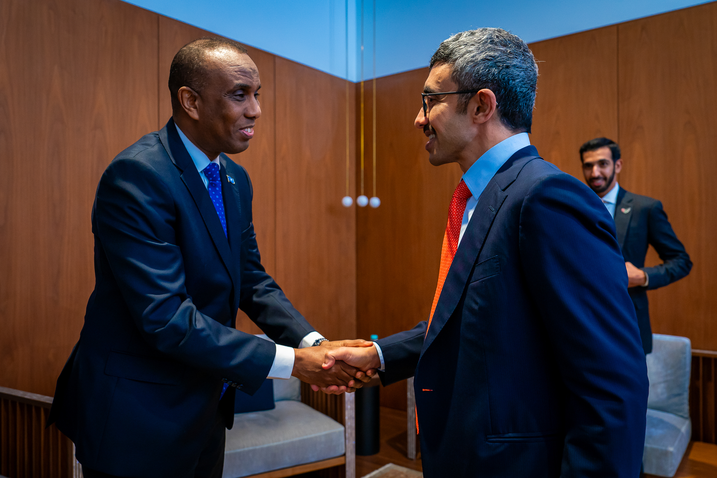 التقى سمو الشيخ عبدالله بن زايد آل نهيان وزير الخارجية، معالي حمزة عبدي بري رئيس وزراء جمهورية الصومال الفيدرالية الشقيقة، وذلك على هامش أعمال الدورة الثامنة والسبعين للجمعية العامة للأمم المتحدة في نيويورك.