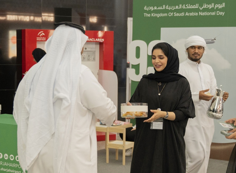 احتفى مطار الشارقة الدولي بالمسافرين السعوديين بمناسبة اليوم الوطني الـ93 للمملكة العربية السعودية في ظل العلاقات الأخوية المتينة التي تربط البلدين الشقيقين وتقديراً لاختيار عدد كبير من السعوديين مطار الشارقة مركزاً مفضّلاً للسفر لهم.