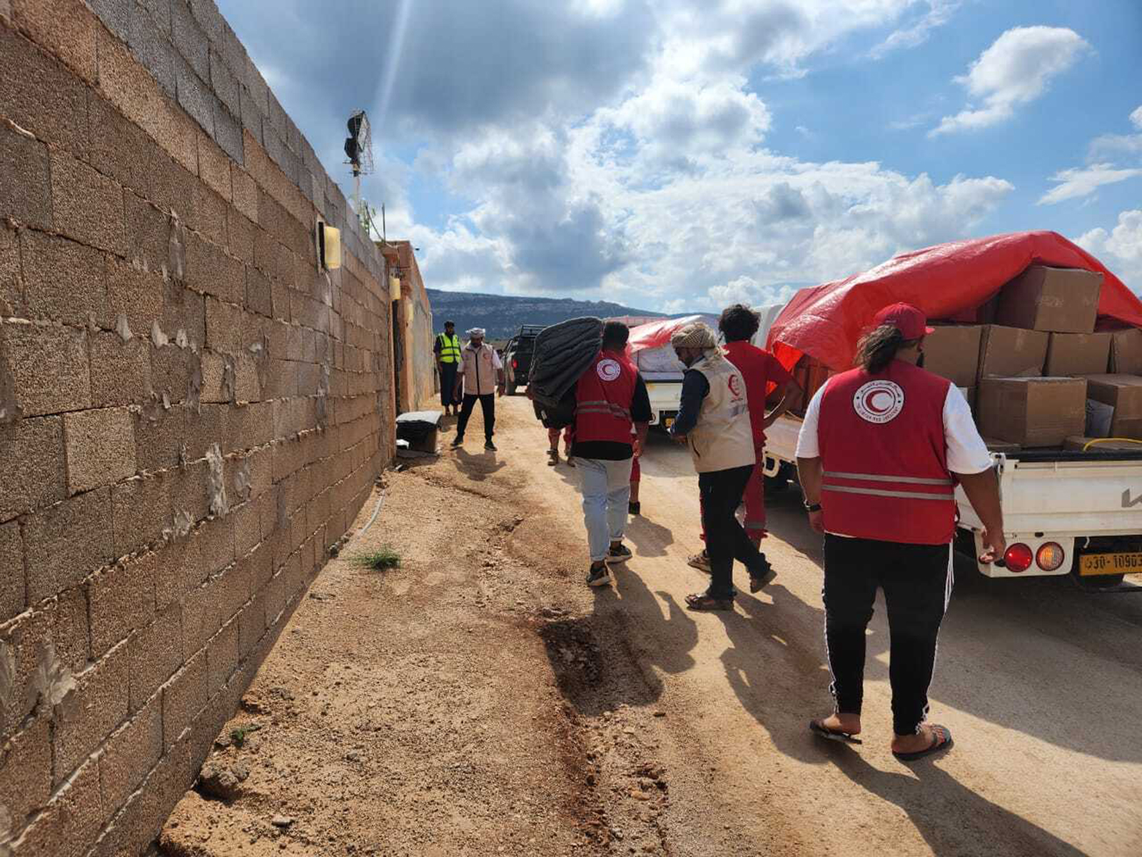 وبين أحمد الهاجري رئيس وفد الهلال الأحمر الإماراتي في ليبيا، أن التنسيق جارٍ مع جمعية الهلال الأحمر الليبي، وذلك بمتابعة حثيثة من سمو الشيخ حمدان بن زايد آل نهيان، ممثل الحاكم في منطقة الظفرة، رئيس هيئة الهلال الأحمر الإماراتي، من أجل حصر أعداد الأسر المتضررة في مدينة درنة الليبية، والوصول إلى الأسر النازحة في المناطق المحيطة بالمدينة في وادي الناقة ومنطقة البلد وحي السيدة خديجة وكرسة وغيرها.