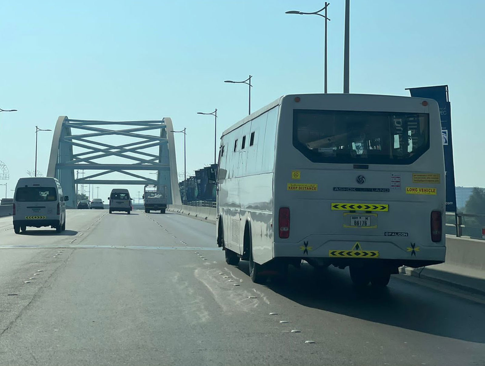 دعت شرطة أبوظبي ملاك ومشغلي حافلات نقل العمال "سعة 50 راكبا فما فوق" إلى ضرورة التقيد وتنبيه السائقين للالتزام بقرار منع سير هذه الفئة من المركبات لداخل جزيرة أبوظبي بما في ذلك المداخل وتشمل "جسر الشيخ زايد وجسر الشيخ خليفة وجسر مصفح وجسر المقطع" أثناء ساعات الذروة الصباحية فقط، مؤكدة استمرار جهودها الهادفة لتوفير انسيابية سير الحركة المرورية والحد من الحوادث التي يمكن أن تسببها المركبات .