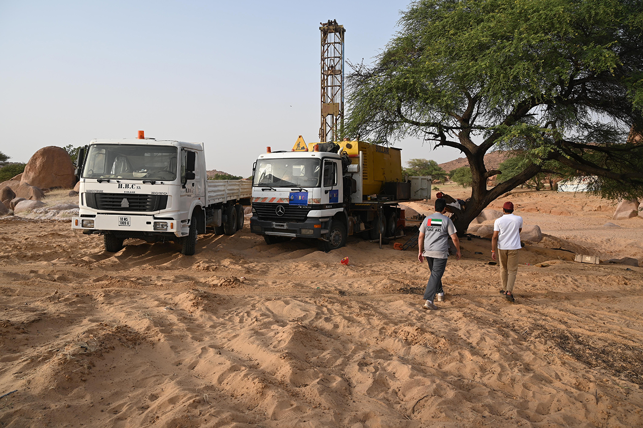 كما تم اليوم حفر أول بئر مياه توفر 50 جالون ماء في الساعة، على مشارف أم جرس وجاري العمل على توفير المياه بشكل فعال وآمن للسكان وحفر أبار أخري في المناطق المجاورة للمدينة .وعبر أهالي القرية عن شكرهم وتقديرهم لدولة الإمارات ومؤسساتها الخيرية المتواجدة في أمدجراس التي تبذل جهودا مقدرة للتخفيف من معاناتهم اليومية وتوفير إحتياجاتهم .