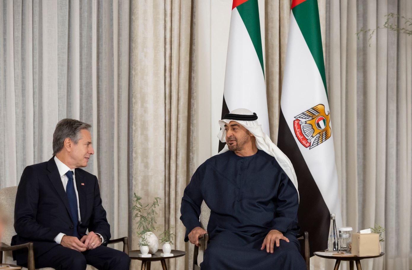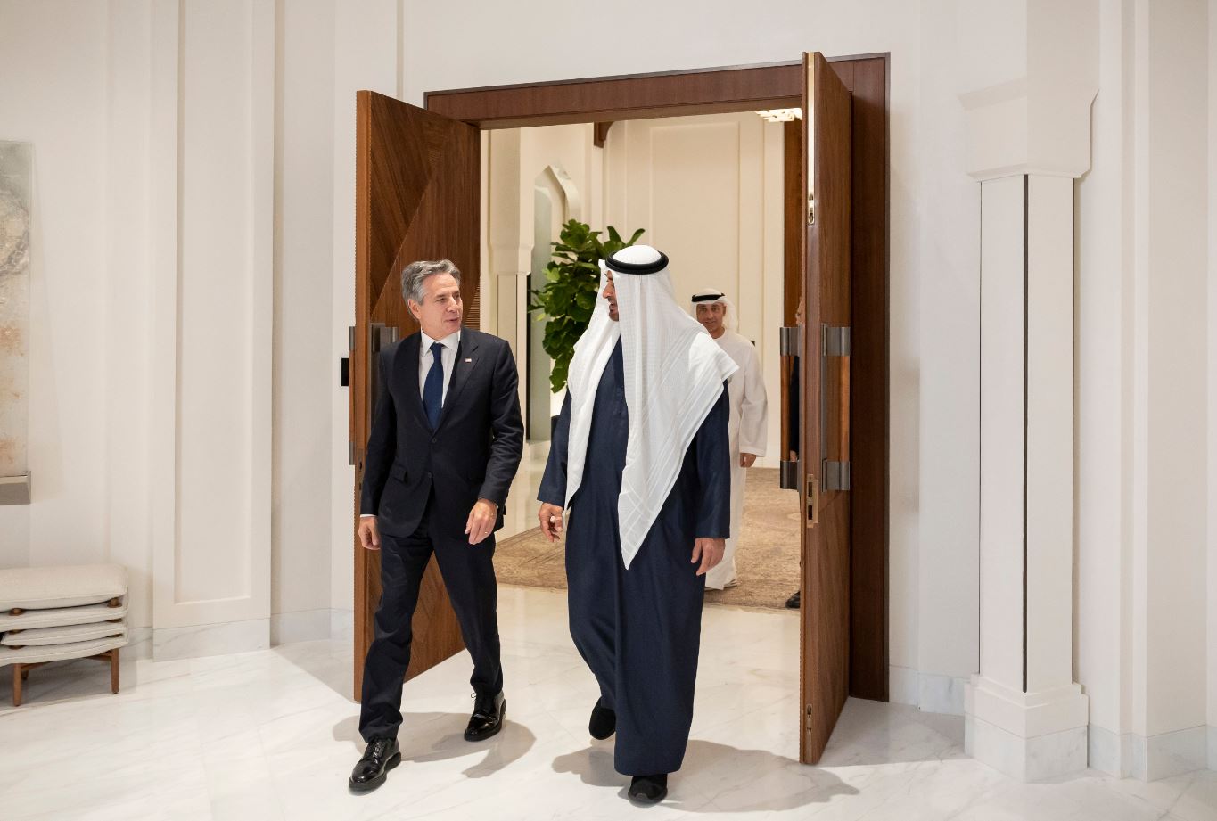 استقبل صاحب السمو الشيخ محمد بن زايد آل نهيان رئيس الدولة "حفظه الله" اليوم معالي أنتوني بلينكن وزير خارجية الولايات المتحدة الأميركية .. وبحثا خلال اللقاء الأولوية القصوى لضمان توفير الحماية الكاملة للمدنيين والحفاظ على أرواحهم وضرورة فتح ممرات إنسانية عاجلة لإيصال المساعدات الطبية والإغاثية إلى قطاع غزة إلى جانب الوقف الفوري لجميع أشكال التصعيد.