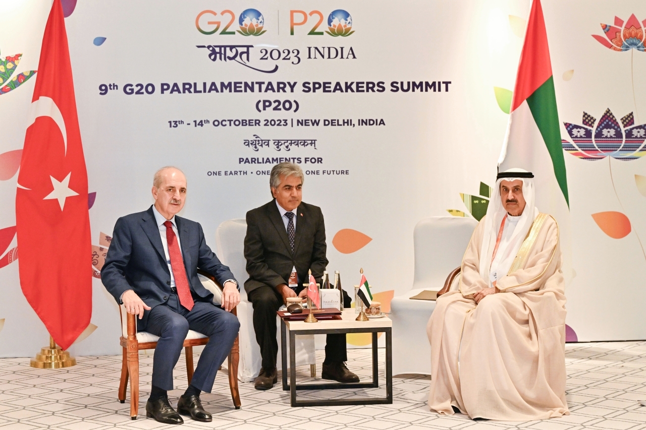 جاء ذلك خلال لقاء جمع معاليه بنعمان كورتولموش - رئيس مجلس الأمة الكبير لجمهورية تركيا على هامش القمة التاسعة لرؤساء برلمانات دول مجموعة العشرين، المنعقدة في نيودلهي بتنظيم من مجلس النواب في جمهورية الهند بالتعاون مع الاتحاد البرلماني الدولي بعنوان «برلمانات لأرض واحدة وأسرة واحدة ومستقبل واحد».