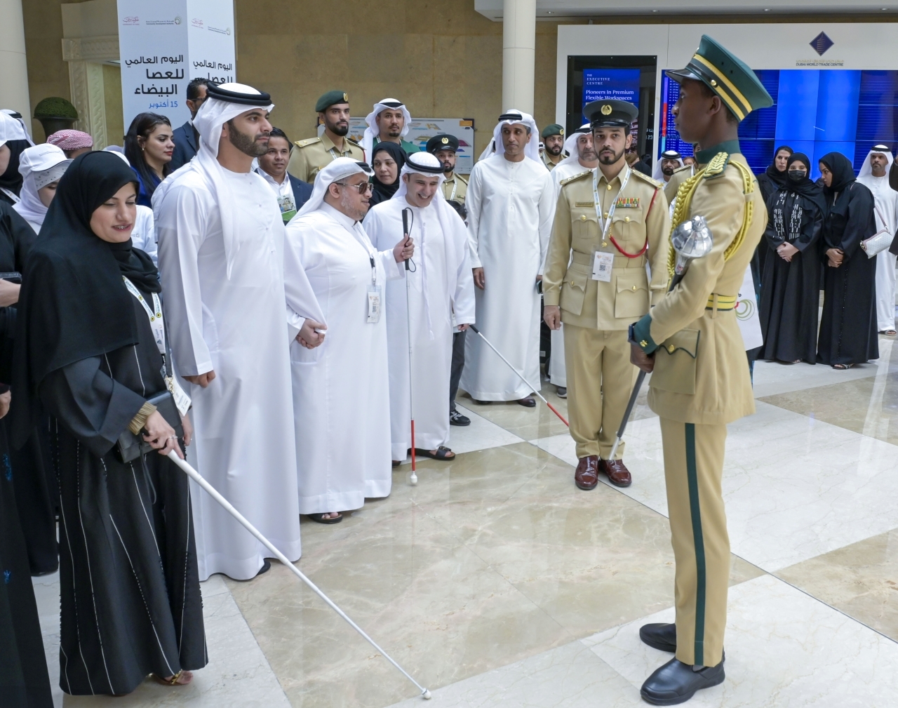 تقدّم سمو الشيخ منصور بن محمد بن راشد آل مكتوم رئيس اللجنة العليا لحماية حقوق أصحاب الهمم في دبي، مسيرة احتفالية، نظّمتها هيئة تنمية المجتمع في دبي، بمناسبة «اليوم العالمي للعصا البيضاء»، والذي يوافق 15 أكتوبر من كل عام، وذلك في مركز دبي التجاري العالمي، بمشاركة عدد من المكفوفين من موظفي الجهات الحكومية والمؤسسات التعليمية ومسؤولي الجمعيات.