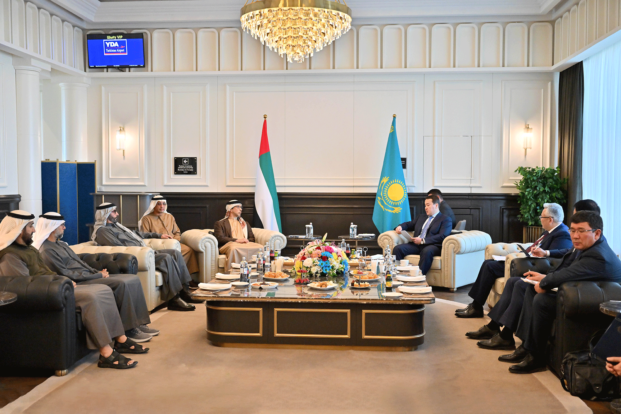 وفي بداية اللقاء نقل سموه تحيات صاحب السمو الشيخ محمد بن زايد آل نهيان، رئيس الدولة، حفظه الله، إلى قاسم جومارت توكاييف، رئيس جمهورية كازاخستان، وتمنيات سموه لكازاخستان قيادةً وشعباً مزيداً من الرقي والتقدم والرخاء.