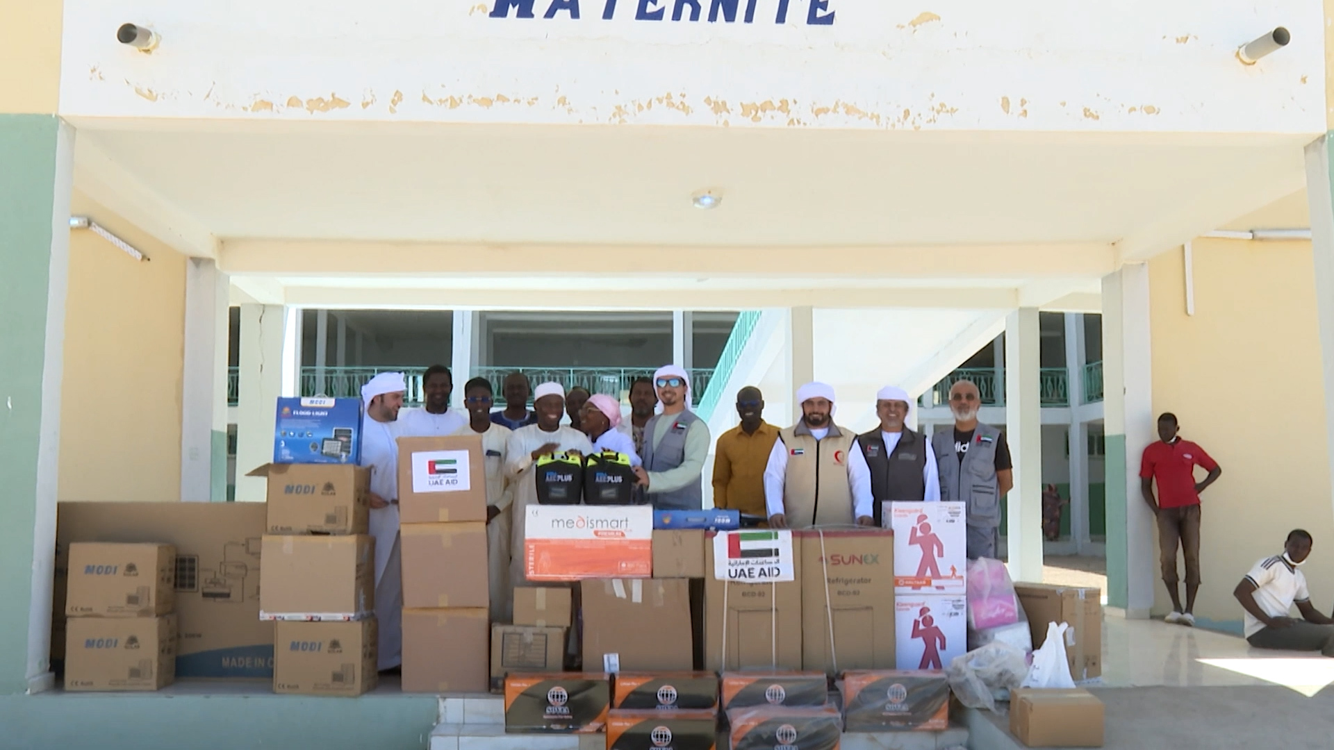 وسلم الفريق الإنساني الإماراتي، الذي يتكون من هيئة الهلال الأحمر الإماراتي ومؤسسة زايد بن سلطان آل نهيان للأعمال الخيرية والإنسانية ومؤسسة خليفة بن زايد آل نهيان للأعمال الإنسانية ويعمل بالتنسيق مع مكتب المساعدات الخارجية، المساعدات إلى الدكتور طاهرعبد الرحمن جوقون مدير المستشفى بحضور السيد عبدالله مصطفى فضل ممثل وزارة الصحة التشادية و الدكتور أبكر أبو أبكر المدير الصحي للمستشفى.