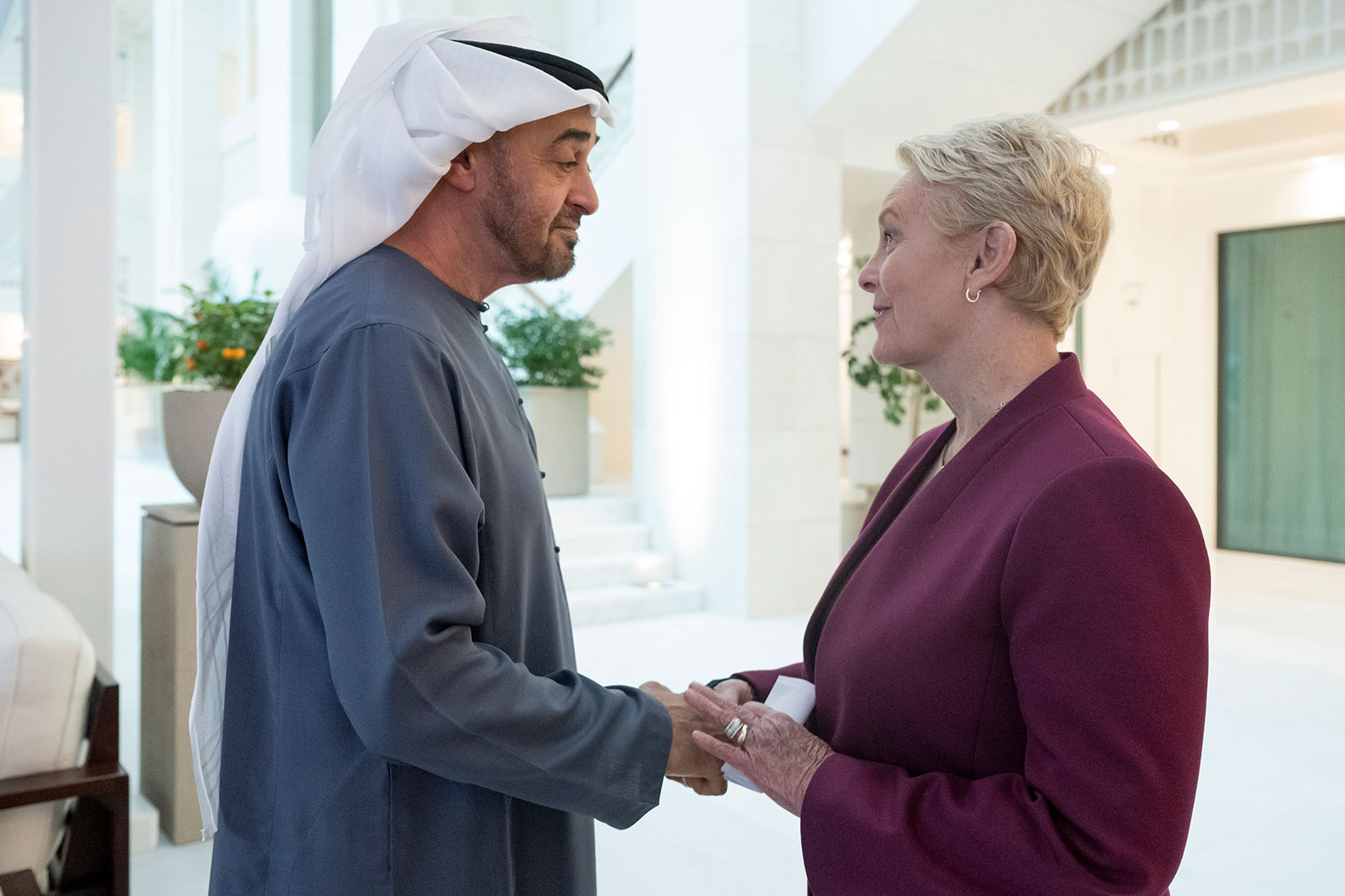استقبل صاحب السمو الشيخ محمد بن زايد آل نهيان رئيس الدولة "حفظه الله" اليوم سيندي ماكين المديرة التنفيذية لبرنامج الأغذية العالمي التابع لمنظمة الأمم المتحدة ..وبحثا خلال اللقاء التعاون والتنسيق بين الجهات المعنية في دولة الإمارات والبرنامج لإيصال المساعدات الإغاثية إلى قطاع غزة في ظل تفاقم الأوضاع الإنسانية للمدنيين في القطاع.