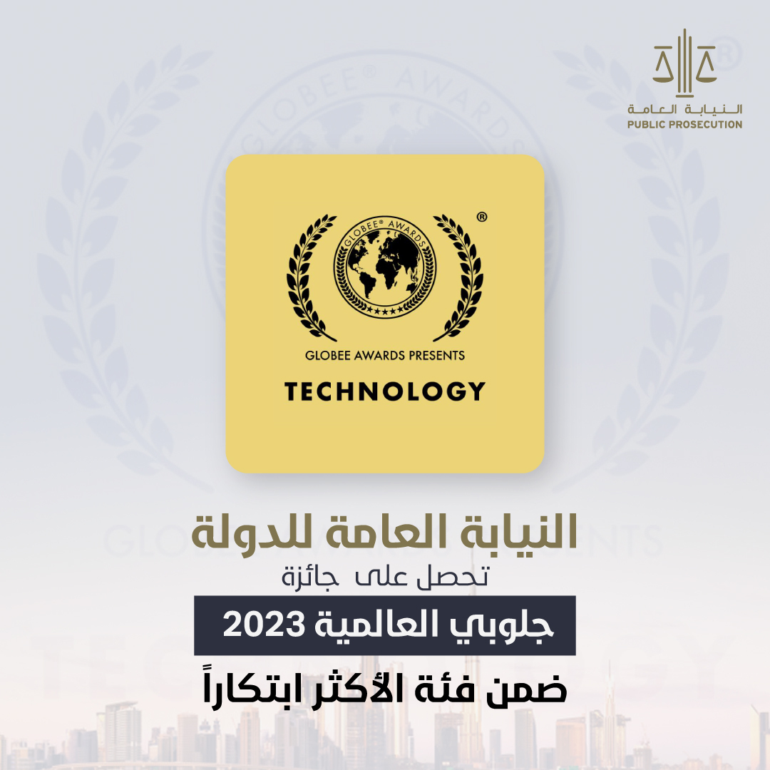 حصلت النيابة العامة للدولة، على جائزة جلوبي العالمية 2023 فئة "فريق تكنولوجيا المعلومات الأكثر ابتكارًا للعام 2023" ضمن جائزة "جلوبي العالمية للأعمال"، وذلك تقديراً لجهود المركز الإعلامي في وضع وتنفيذ الاستراتيجيات الإعلامية، وترسيخ الرسائل الإعلامية الهادفة، وابتكار محتوى إبداعي يواكب المتغيرات ويساهم في تعزيز مكانة النيابة العامة الريادية في كافة المجالات.