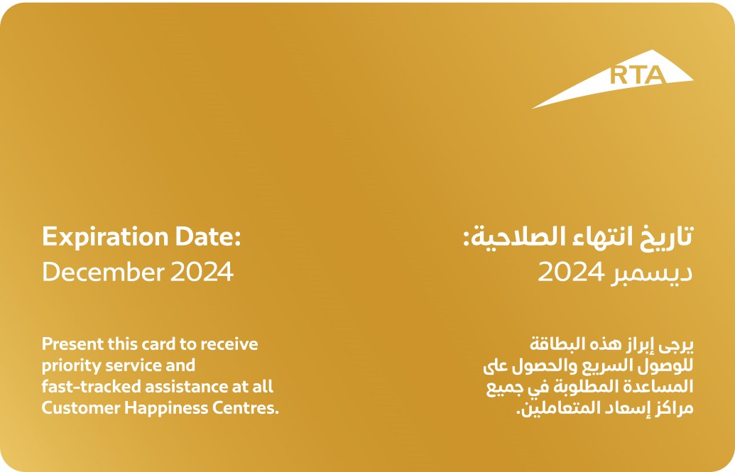 أطلقت هيئة الطرق والمواصلات في دبي مؤخراً مبادرةً أطلقت عليها بطاقة (العضوية المميزة) لمتعامليها المميزين من الأفراد والشركات بما ينسجم وتوجهات الهيئة الرامية إلى تعزيز إسعاد المتعاملين من مختلف شرائح المجتمع والارتقاء بمستوى رضاهم عن الخدمات التي تقدمها الهيئة في مراكز إسعاد المتعاملين المنتشرة في عموم إمارة دبي.