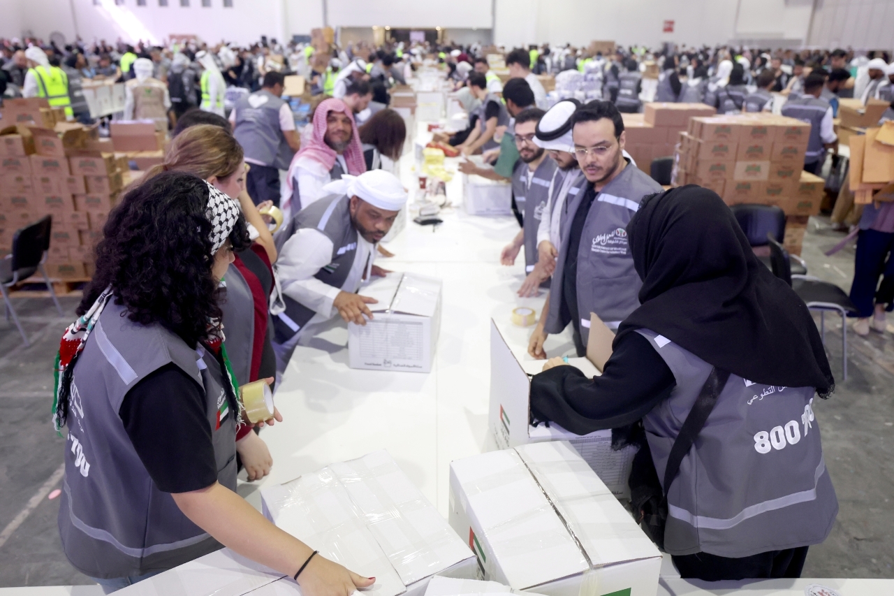 وشهد مركز أبوظبي الوطني للمعارض في العاصمة أبوظبي، منذ ساعات الصباح الباكر، توافد أكثر من 3500 متطوع ومتطوعة من مختلف فئات المجتمع، للمشاركة بقوة في الحملة التي أطلقت بالتعاون مع برنامج الغذاء العالمي وبالتنسيق مع وزارة الخارجية ووزارة تنمية المجتمع، للتضامن مع الأطفال الفلسطينيين والأسر المتأثرة والعمل على التخفيف من حدة الأوضاع الإنسانية، ورفع المعاناة عن الفئات الأكثر ضعفاً، خصوصاً الأطفال الذين يشكلون ما يقرب من نصف سكان القطاع «ما يزيد على مليون طفل» من خلال توفير الاحتياجات الأساسية لهم ولأمهاتهم إضافة إلى المستلزمات الصحية ومواد النظافة العامة.