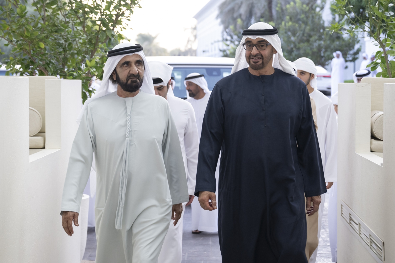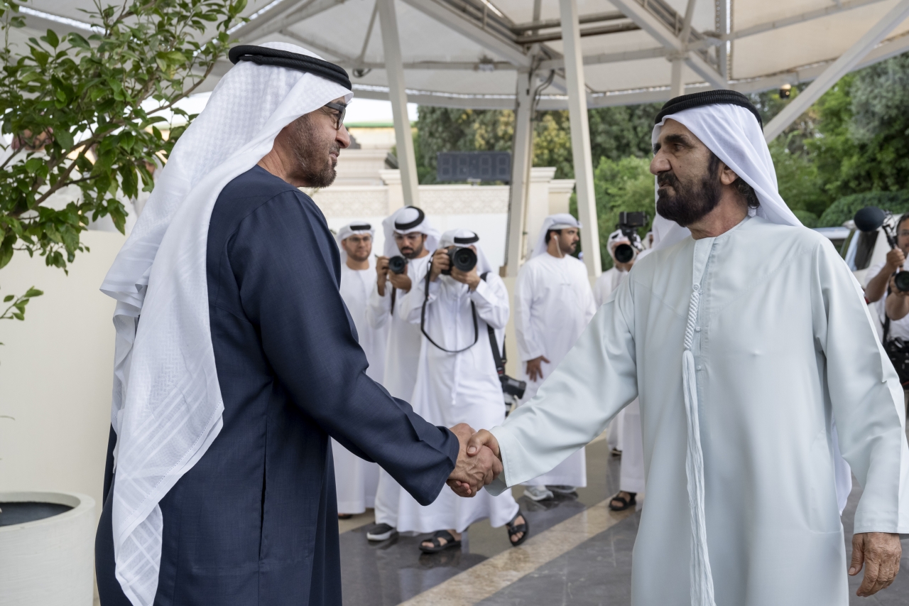 استقبل صاحب السمو الشيخ محمد بن زايد آل نهيان رئيس الدولة، حفظه الله، اليوم، أخاه صاحب السمو الشيخ محمد بن راشد آل مكتوم نائب رئيس الدولة رئيس مجلس الوزراء حاكم دبي، رعاه الله.