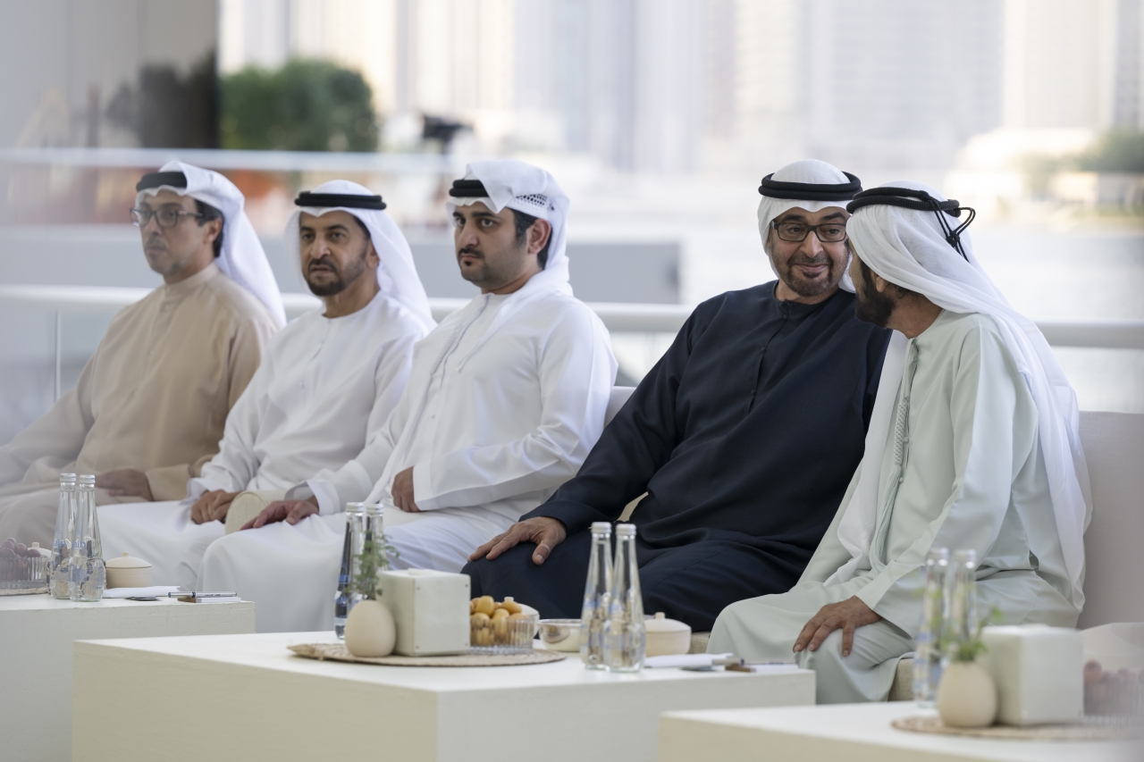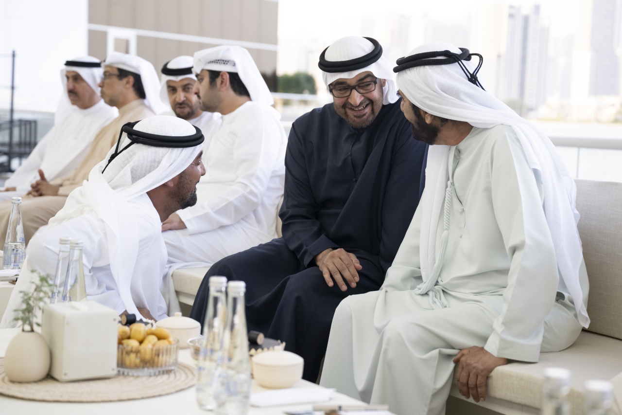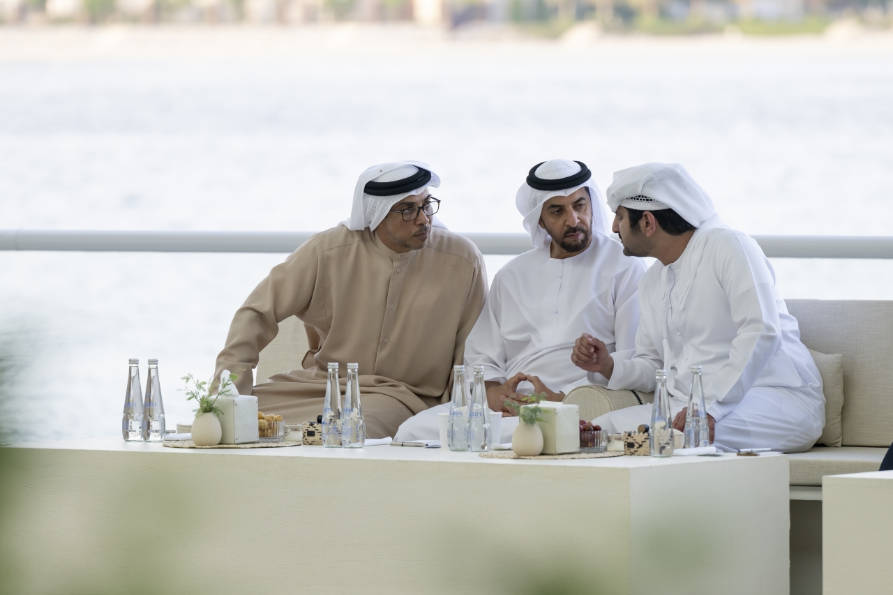 حضر مجلس قصر البحر.. سمو الشيخ منصور بن زايد آل نهيان نائب رئيس الدولة نائب رئيس مجلس الوزراء رئيس ديوان الرئاسة وسمو الشيخ خالد بن محمد بن زايد آل نهيان ولي عهد أبوظبي وسمو الشيخ مكتوم بن محمد بن راشد آل مكتوم نائب حاكم دبي نائب رئيس مجلس الوزراء وزير المالية .