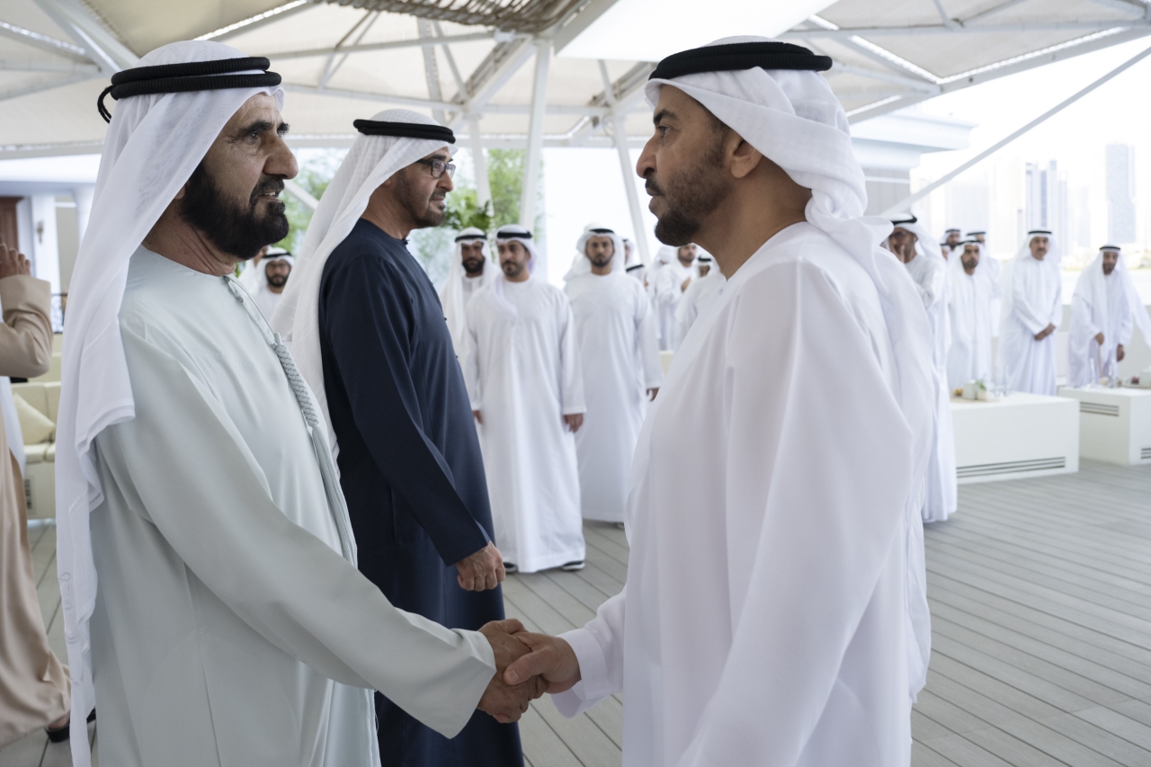 وسمو الشيخ حامد بن زايد آل نهيان وسمو الشيخ ذياب بن محمد بن زايد آل نهيان رئيس مكتب الشؤون التنموية وأسر الشهداء في ديوان الرئاسة وسمو الشيخ أحمد بن سعيد آل مكتوم رئيس هيئة دبي للطيران المدني رئيس مؤسسة مطارات دبي الرئيس الأعلى لطيران الامارات والمجموعة، وسمو الشيخ زايد بن حمدان بن زايد آل نهيان رئيس المكتب الوطني للإعلام وعدد من الشيوخ والمسؤولين والضيوف والمواطنين.