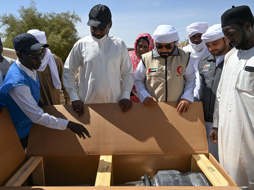 سلّم الفريق الإنساني الإماراتي، مضخات وغطاسات لمصلحة محطة المياه الرئيسية بمدينة أم جرس التشادية، وذلك للمساهمة في رفع إنتاجية المحطة من المياه بحيث توفرها لنحو 20 ألف شخص من أهالي المدينة والمناطق المجاورة لها.