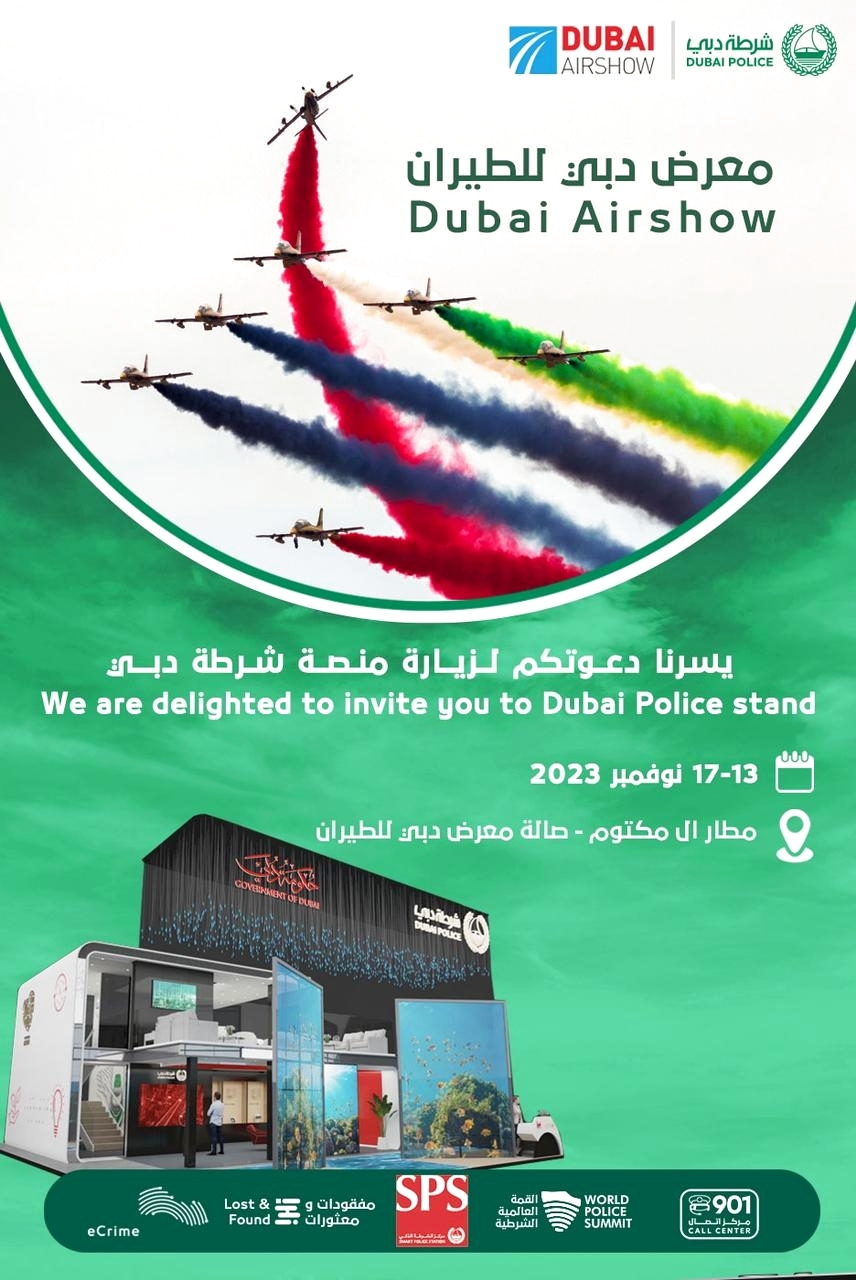 وأكد العميد الدكتور أحمد يوسف المنصوري نائب مدير الإدارة العامة لإسعاد بالوكالة، حرص القيادة العامة لشرطة دبي، على المشاركة في معرض دبي للطيران، الذي يُعد من أضخم المعارض في قطاع الطيران، وذلك بهدف عرض أحدث إنجازاتها وخدماتها الذكية في تعزيز الأمن والأمان، والعمل على إسعاد أفراد المجتمع. بدوره، أشار العميد حارب الشامسي مساعد المدير العام للإدارة العامة للتحريات والمباحث الجنائية لشؤون الإدارة، إلى أن شرطة دبي ستعرض من خلال منصاتها خدمات مركز الشرطة الذكي SPS، وخدمات مركز أنظمة الطائرات المُسيرة.