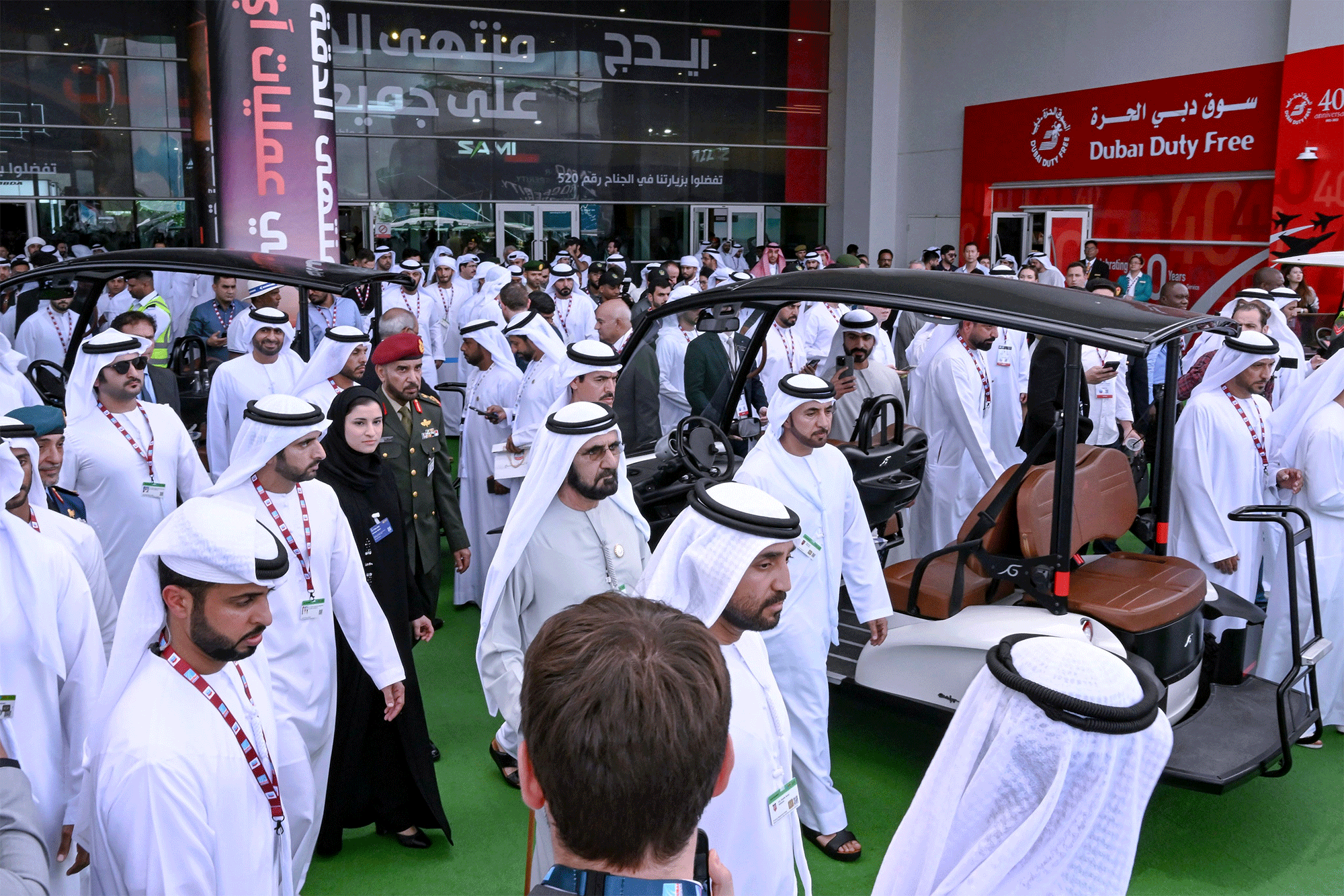 تفقد صاحب السمو الشيخ محمد بن راشد آل مكتوم، نائب رئيس الدولة رئيس مجلس الوزراء حاكم دبي، رعاه الله، يرافقه سمو الشيخ حمدان بن محمد بن راشد آل مكتوم، ولي عهد دبي رئيس المجلس التنفيذي؛ وسمو الشيخ مكتوم بن محمد بن راشد آل مكتوم، النائب الأول لحاكم دبي نائب رئيس مجلس الوزراء وزير المالية، جانباً من فعاليات معرض دبي للطيران 2023 في دورته الأكبر التي تُعقد بمشاركة 1400 جهة عارضة من 148 دولة وتستمر أعماله حتى 17 نوفمبر الجاري في "دبي وورلد سنترال".