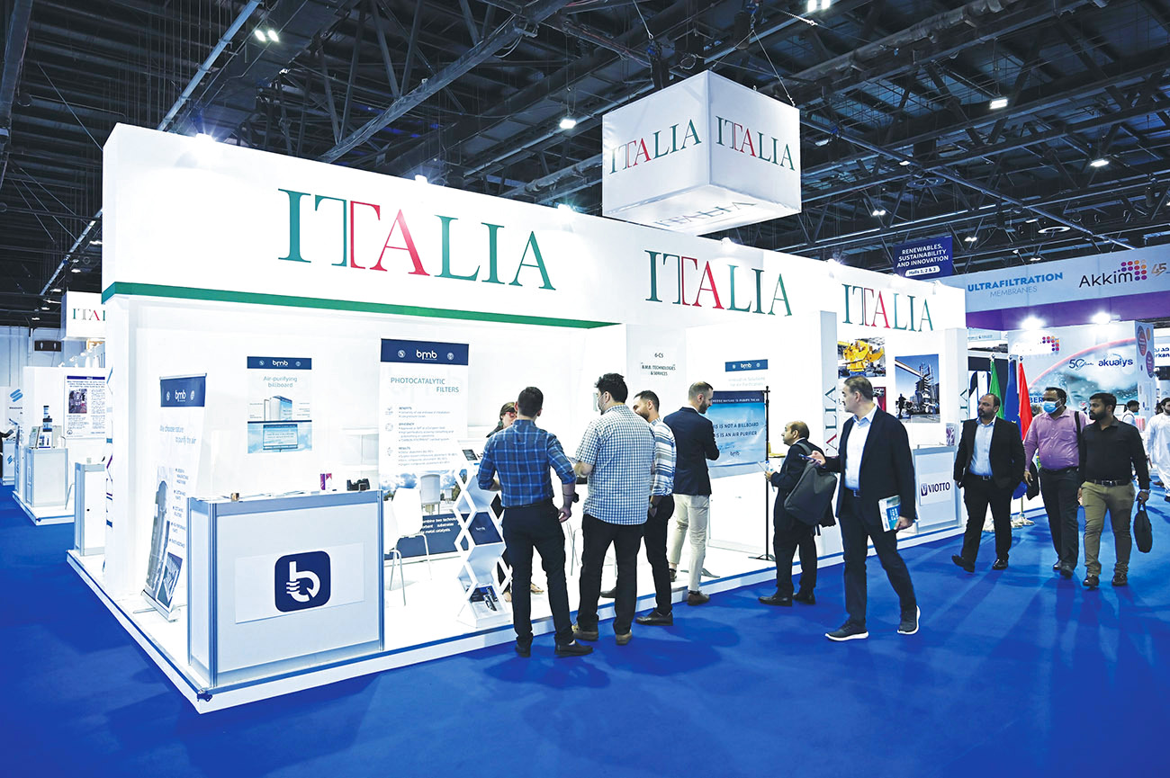 استعرضت 28 شركة إيطالية حلولها المتقدمة في قطاع الطاقة المتجددة، في معرض تكنولوجيا المياه والطاقة والبيئة «ويتيكس» ودبي للطاقة الشمسية، الذي تستمر فعالياته حتى 17 نوفمبر الجاري بمركز دبي التجاري العالمي.