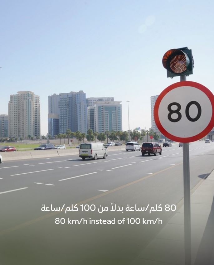 وأشارت الهيئة إلى أنه سيتم تغيير اللوحات المرورية التي تحدد الحد الأقصى للسرعة القانونية في ذلك الجزء من شارع الاتحاد بـــ 80 كلم/ساعة بدلاً من 100 كلم/ساعة على شارع الاتحاد في الجزء الواقع بين إمارة الشارقة وجسر القرهود وإضافة خطوط حمراء في بداية منطقة خفض السرعة لتنبيه السائقين وفق أفضل المعايير والأساليب المعتمدة في السلامة المرورية.
