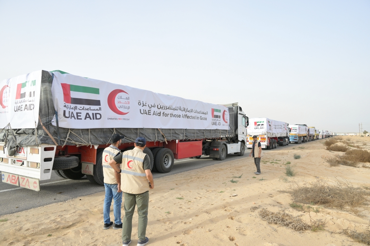 تنفيذاً لتوجيهات صاحب السمو الشيخ محمد بن زايد آل نهيان رئيس الدولة، حفظه الله، تواصل الإمارات جهودها الإنسانية لدعم الأشقاء الفلسطينيين في قطاع غزة، في إطار عملية «الفارس الشهم 3»، حيث تحركت أمس قافلة مساعدات إنسانية إماراتية من مدينة العريش المصرية إلى معبر رفح، تمهيداً لدخولها إلى قطاع غزة، ليتم توزيعها تحت إشراف إماراتي.