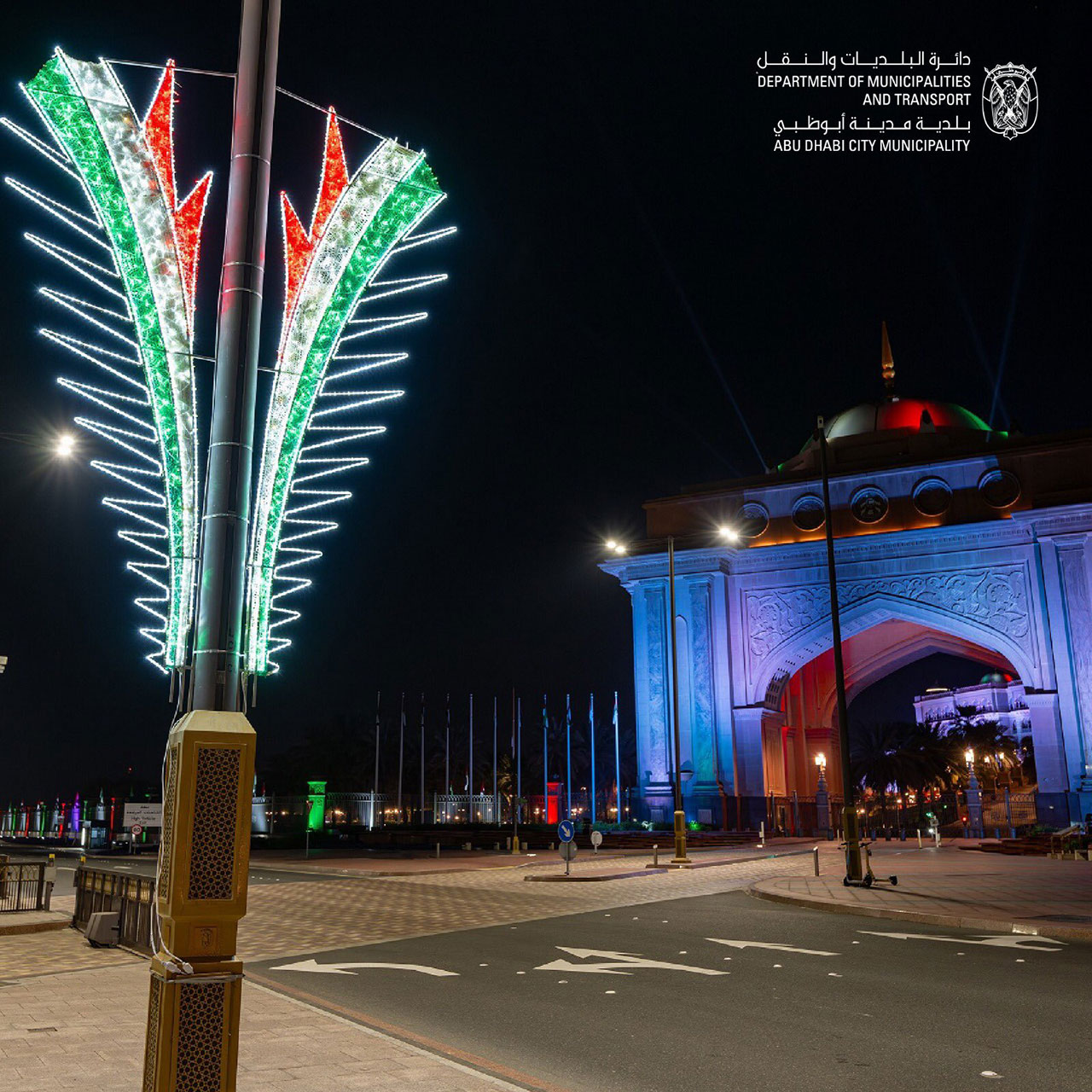 وعملت فرق البلدية على تركيب آلاف التشكيلات المضيئة في العديد من الشوارع الرئيسية والدوارات والجسور داخل وخارج جزيرة أبوظبي، والتي يعد أبرزها شارع كورنيش أبوظبي، وكذلك الطرق الخارجية السريعة مثل شارع الخليج العربي وشارع الشيخ زايد وطريق المطار، بالإضافة إلى المدن الخارجية الواقعة ضمن نطاق البلدية.