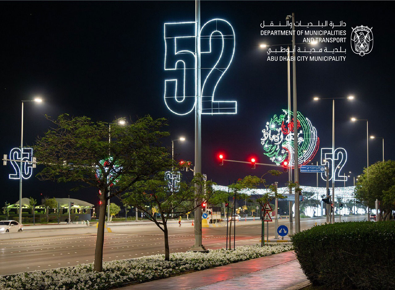 أنجزت بلدية مدينة أبوظبي تركيب 4800 تشكيل هندسي مضيء لتزيين شوارع جزيرة أبوظبي والمدن الخارجية الواقعة ضمن النطاق الجغرافي للبلدية ومراكزها الفرعية، وذلك لمشاركة أفراد المجتمع احتفالاتهم بعيد الاتحاد الـ52، ونشر مظاهر الفرحة والابتهاج بهذا اليوم الغالي على قلوب أبناء الإمارات والمقيمين على أرضها.