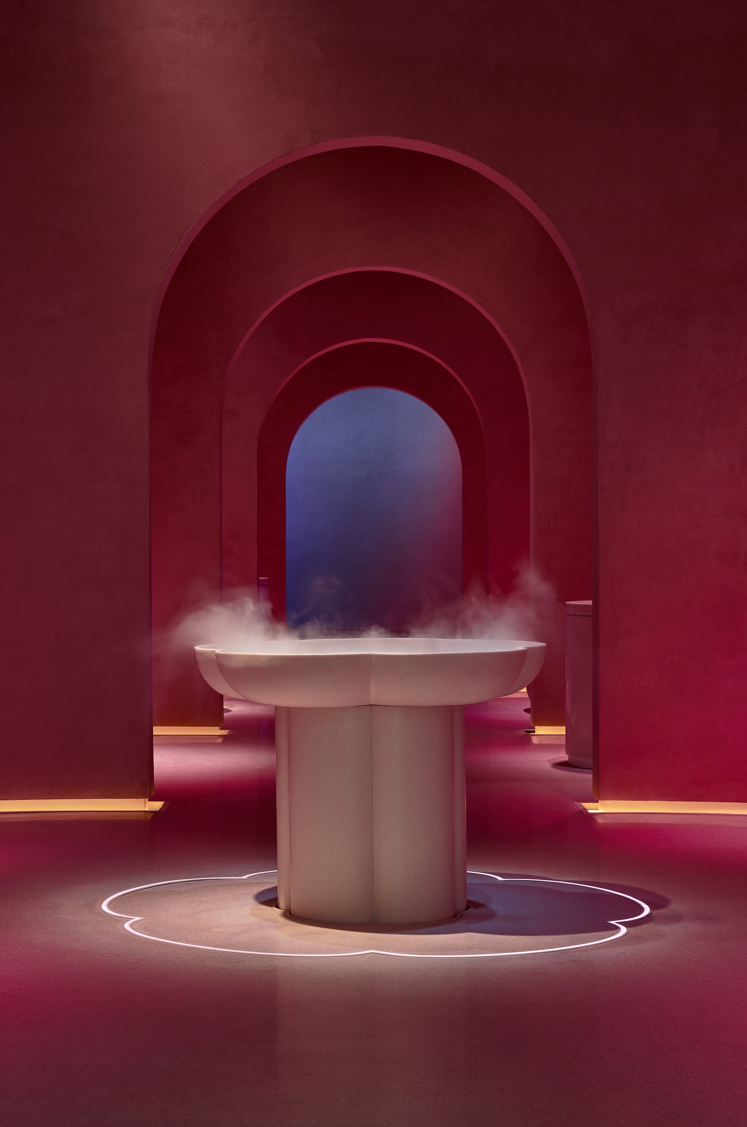 • يجد الضيوف عند دخولهم منطقة الواحة في الطابق الثالث نافورة مياه من الرخام الفاخر، تضفي على المساحة أجواء من الصفاء والسكينة بإطلاق العبير الفوّاح لزهرة الشرشير من التراث البيئي الإماراتي.