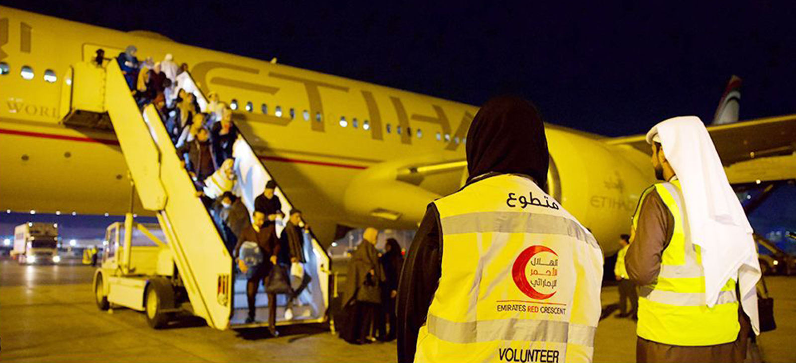 وحطّت الطائرة القادمة من مطار العريش في جمهورية مصر العربية في مطار أبوظبي وعلى متنها 77 ممن يحتاجون للرعاية الطبية، إضافة إلى 43 مرافقاً من عائلاتهم.