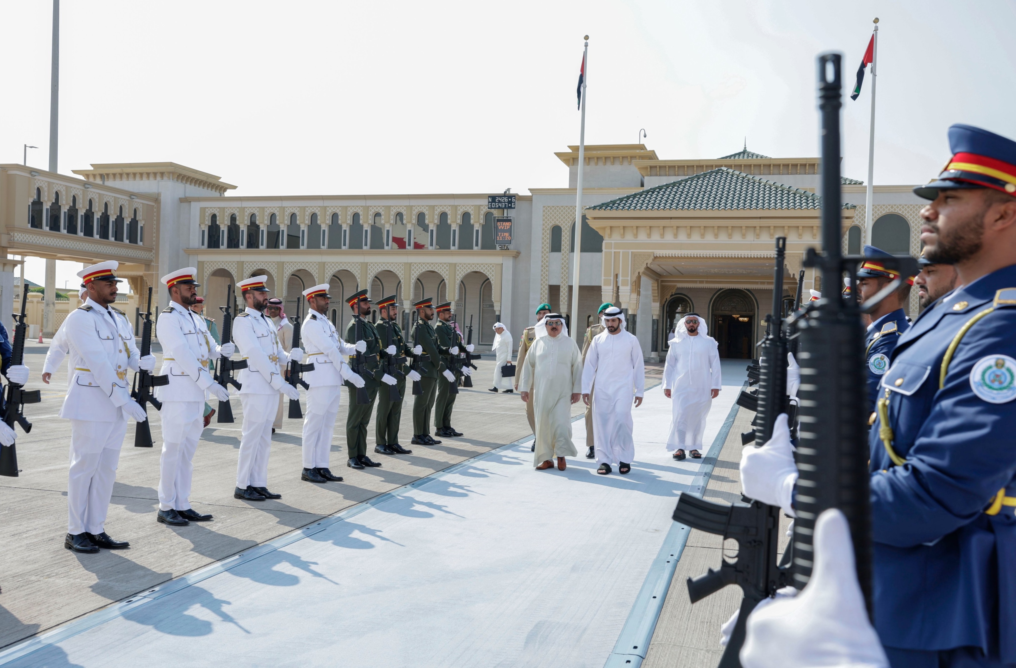 كان في مقدمة مودِّعي جلالته في مطار الرئاسة بأبوظبي سمو الشيخ حمدان بن محمد بن راشد آل مكتوم، ولي عهد دبي، والفريق سموّ الشيخ سيف بن زايد آل نهيان، نائب رئيس مجلس الوزراء وزير الداخلية.