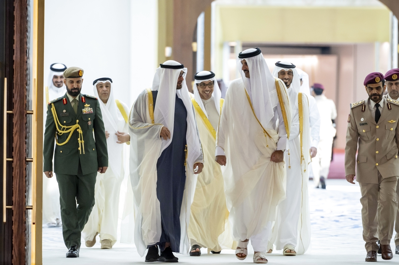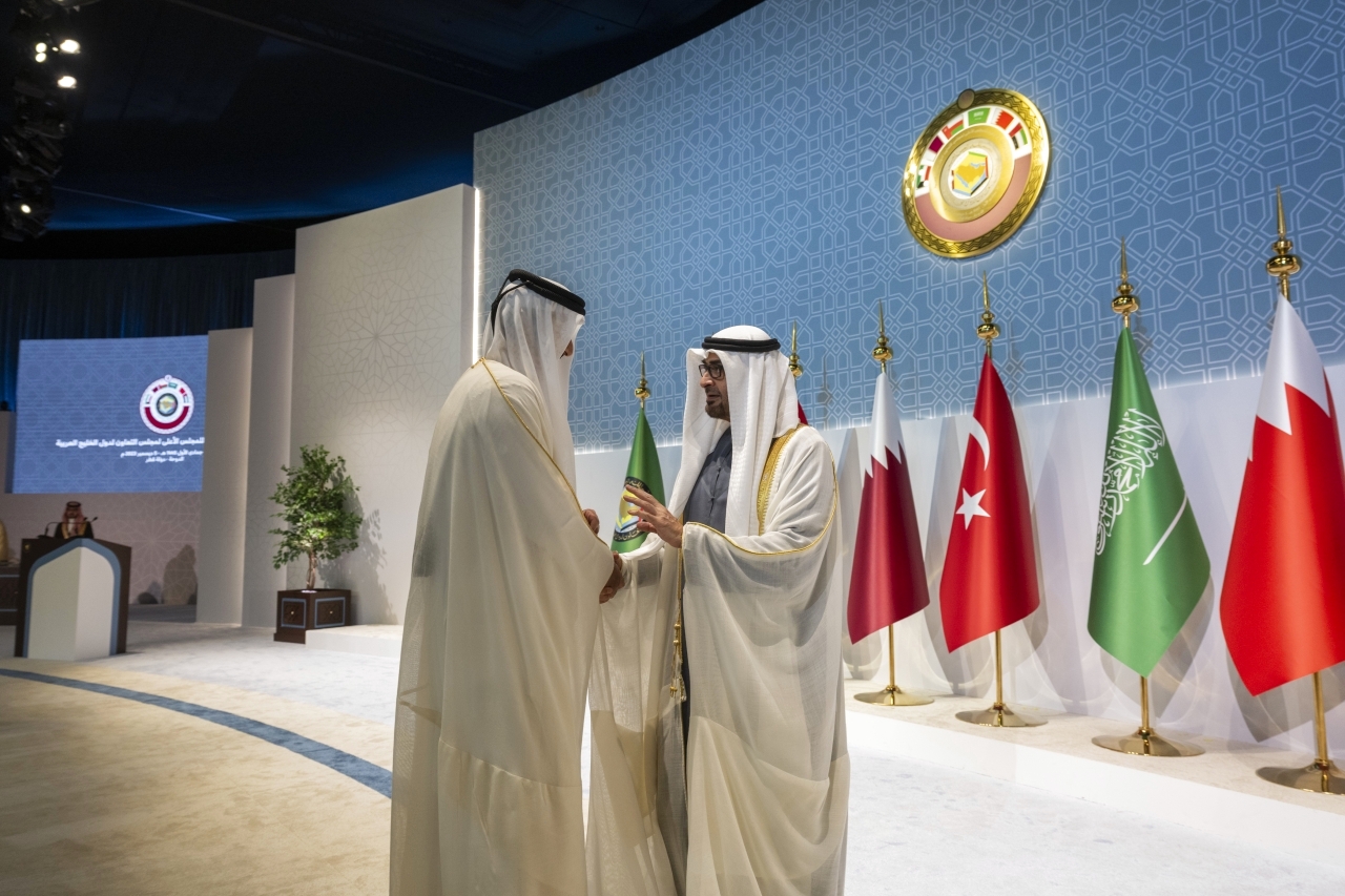 ترأس صاحب السمو الشيخ محمد بن زايد آل نهيان، رئيس الدولة، حفظه الله، وفد دولة الإمارات المشارك في الدورة الـ 44 للمجلس الأعلى لمجلس التعاون لدول الخليج العربية، التي افتتح أعمالها أمس، الشيخ تميم بن حمد آل ثاني، أمير دولة قطر الشقيقة.