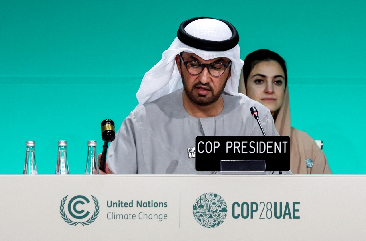 جاء ذلك خلال كلمته في ختام أعمال COP28، حيث اختتم المؤتمر أمس باتفاق تاريخي بين 198 طرفاً يمهد الطريق لمرحلة جديدة من العمل المناخي، وتوصل الأطراف إلى «اتفاق الإمارات» الذي يتضمن خطة عمل مناخية طموحة للحفاظ على إمكانية تفادي تجاوز الارتفاع في درجة حرارة الأرض مستوى 1.5 درجة مئوية، ويدعو الأطراف إلى تحقيق انتقال منظم ومسؤول وعادل ومنطقي إلى منظومة طاقة خالية من كافة مصادر الوقود التقليدي الذي لا يتم تخفيف انبعاثاته وذلك بهدف تحقيق الحياد المناخي، ويشجعهم على تقديم مساهمات محددة وطنياً تشمل كافة القطاعات الاقتصادية، كما يستهدف زيادة القدرة الإنتاجية لمصادر الطاقة المتجددة 3 مرات ومضاعفة معدل تحسين كفاءة الطاقة سنوياً بحلول عام 2030، ويبني زخماً لتأسيس هيكل جديد للتمويل المناخي.