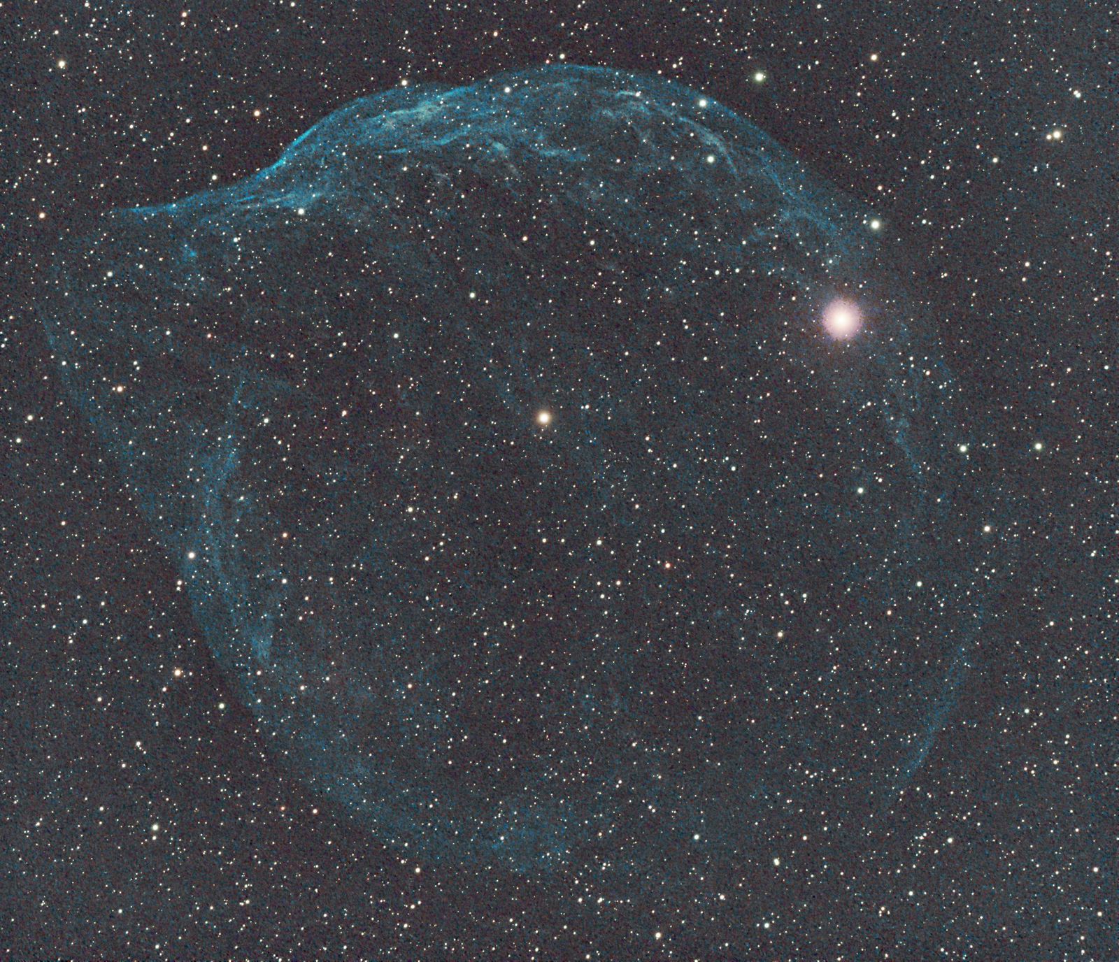 وبحسب مركز الفلك الدولي يتكون هذا السديم في معظمه من الهيدروجين المؤين، والذي نتج عن انفجار النجم اللامع نسبيا والظاهر في منتصف السديم قبل حوالي 70 ألف سنة بحسب التقديرات، قاذفا طبقات الهيدروجين المكونة للنجم إلى الخارج، ونتج شكل الفقاعة الظاهرة في الصورة بسبب الرياح النجمية الصادرة من النجم بسرعة 1700 كيلومتر في الثانية.