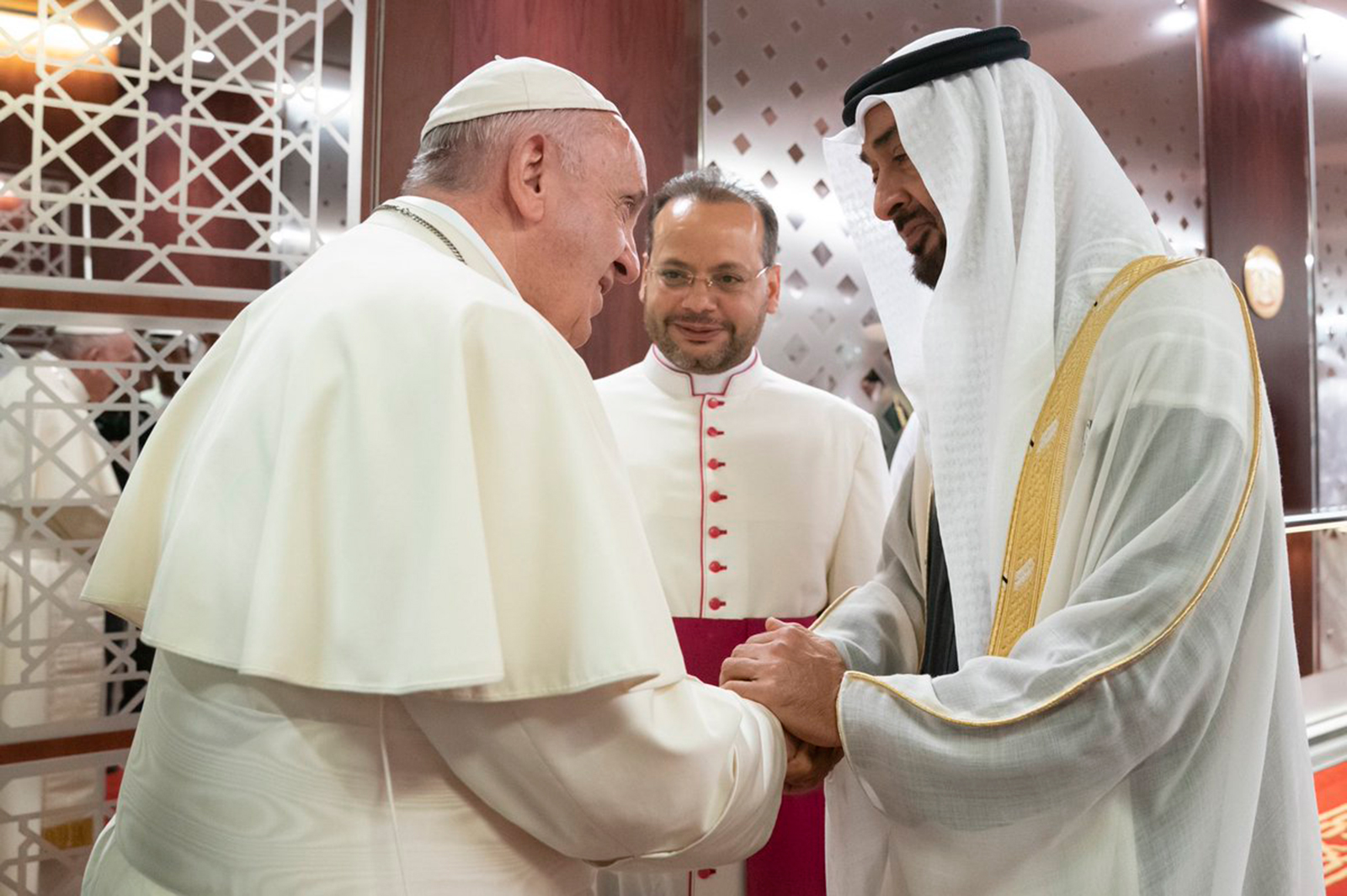 أشاد البابا فرنسيس، بابا الكنيسة الكاثوليكية، بجهود صاحب السمو الشيخ محمد بن زايد آل نهيان، رئيس الدولة، حفظه الله، في دعم الأخوة الإنسانية.