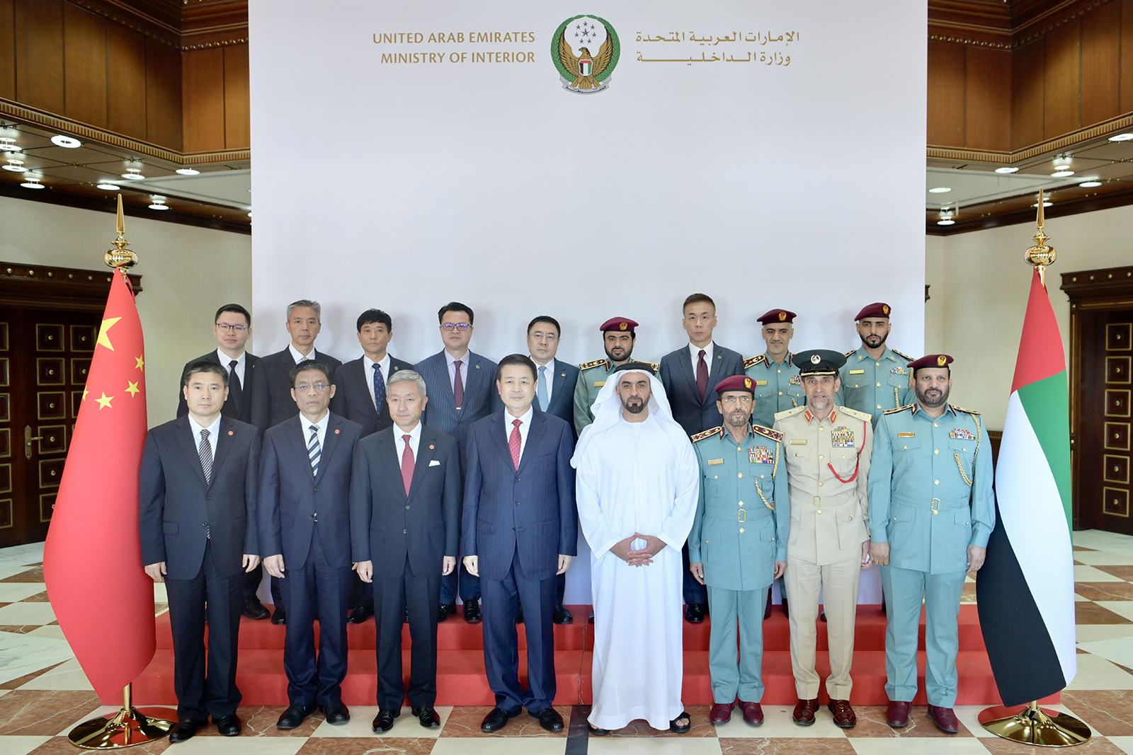 ثم ترأس سموه الجانب الإماراتي في اجتماع موسع مع الوفد الصيني الزائر والذي ترأسه وزير الأمن العام الصيني، حيث تم خلال الاجتماع إطلاق الحوار الشرطي الإستراتيجي بين البلدين ضمن تعاونهما الإستراتيجي القائم في كافة المجالات والذي من شأنه تعميق العلاقات وتوسيع آفاق تبادل الخبرات والمعارف في مجالات مكافحة الجريمة العابرة للحدود والجرائم السيبرانية والجريمة المنظمة وتبادل أفضل الممارسات المطبقة بالبلدين للاستفادة من تجربتهما المتميزة في مجالات العمل الشرطي.