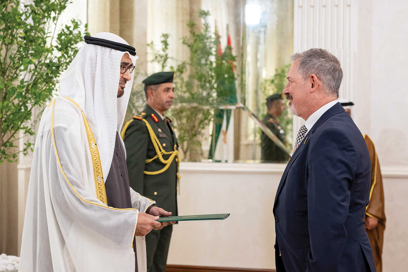 ورحب صاحب السمو الشيخ محمد بن زايد آل نهيان بالسفراء ــ خلال المراسم التي جرت في قصر البحر في أبوظبي ــ متمنياً لهم التوفيق في مهامهم والعمل على دفع العلاقات بين دولة الإمارات العربية المتحدة ودولهم إلى الأمام في جميع المجالات.. مؤكدا سموه أنهم سيجدون دعم مختلف الجهات المعنية في الدولة لتسهيل أعمالهم.