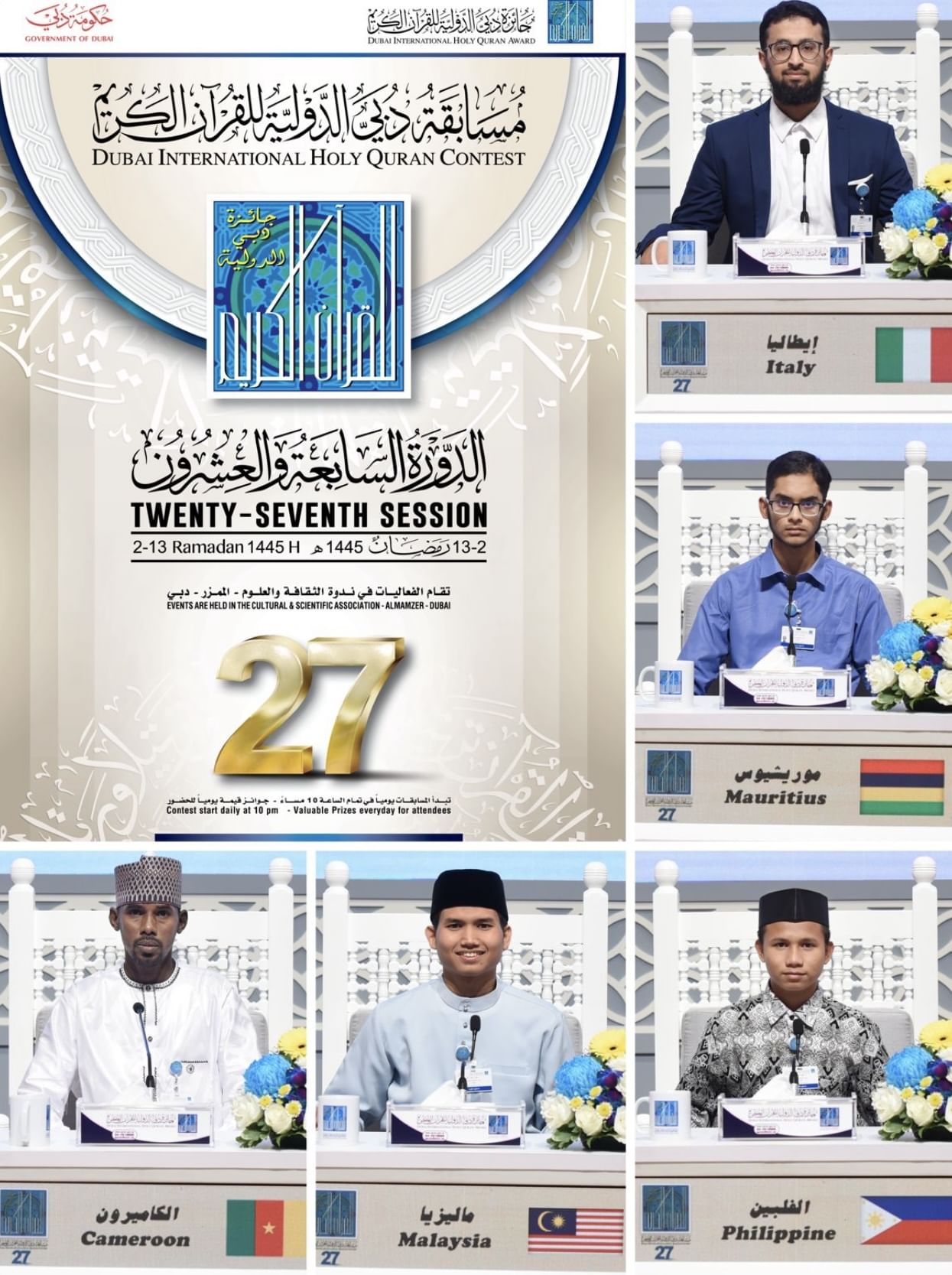 انطلقت الليلة منافسات جائزة دبي الدولية للقرآن الكريم، في دورتها الـ 27 ، التي تقام برعاية صاحب السمو الشيخ محمد بن راشد آل مكتوم نائب رئيس الدولة رئيس مجلس الوزراء حاكم دبي، رعاه الله، وتستمر فعالياتها حتى 13 رمضان 1445هجرية، بمقر ندوة الثقافة والعلوم بمنطقة الممزر بدبي، وذلك بمشاركة نحو 70 دولة وجالية إسلامية من أنحاء العالم.