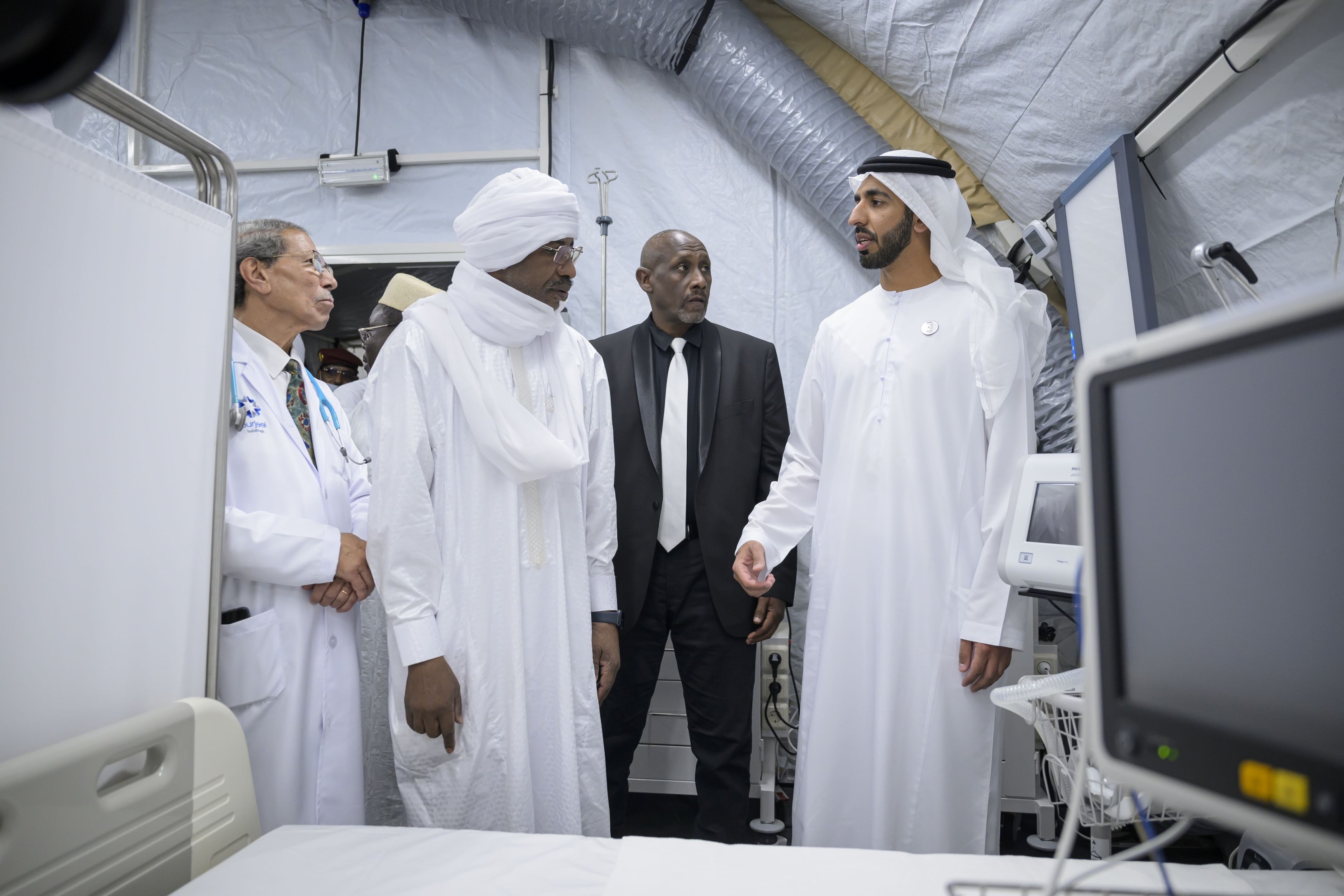 تنفيذاً لتوجيهات صاحب السمو الشيخ محمد بن زايد آل نهيان رئيس الدولة "حفظه الله".. افتتح معالي الشيخ شخبوط بن نهيان آل نهيان وزير دولة، "مستشفى الإمارات الميداني" المتكامل في مدينة أبشي في جمهورية تشاد، ليقدم خدماته العلاجية والرعاية الطبية إلى الأشقاء السودانيين اللاجئين إلى الأراضي التشادية.