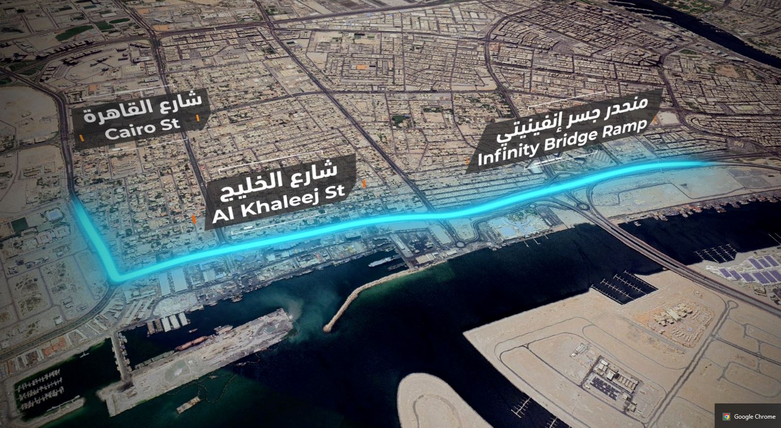وأضاف: يشمل المشروع الذي يعد جزءاً من المرحلة الرابعة، تنفيذ نفق شارع الخليج بسعة ثلاثة مسارات في كل اتجاه بطول 1650 متراً، لتوفير حركة مرورية حرة وانسيابية للقادمين من جسر (إنفينيتي) باتجاه ديرة والعكس، كما يشمل تطوير تقاطع شارعي القاهرة - الوحيدة من دوارات إلى تقاطعات محكومة بإشارات ضوئية، وكذلك تنفيذ بعض التحسينات على شارع القاهرة، وربط منحدر الجسر القادم من جزر دبي إلى النفق الجديد على شارع الخليج باتجاه الشمال، مشيراً إلى أن هذه المرحلة من المشروع تخدم مناطق أبو هيل، والوحيدة، والممزر، إضافة إلـى المشاريع التطويرية وهي: جزر دبي، وواجهة دبـي البحرية، وسوق الواجهة البحرية، وميناء الحمرية.